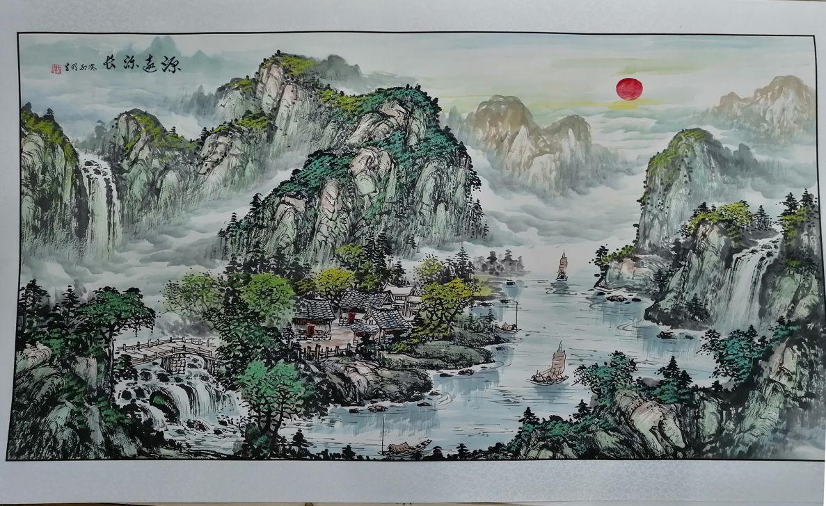 赵明升,原名恩发,号百川,1946年生于重庆,自幼酷爱书画,孜孜以求。60年代初,有幸得到国画大师李可染亲授,山水绘画技法达到了前所未有的高度。六十多年的艺术磨砺之中,博采众家之长,容纳百家,取其精华,形成了独特的风格自成一派。其作品构图简练,有自然感、空间感、笔墨色恰到好处,达到了雅俗共赏的大成之境。