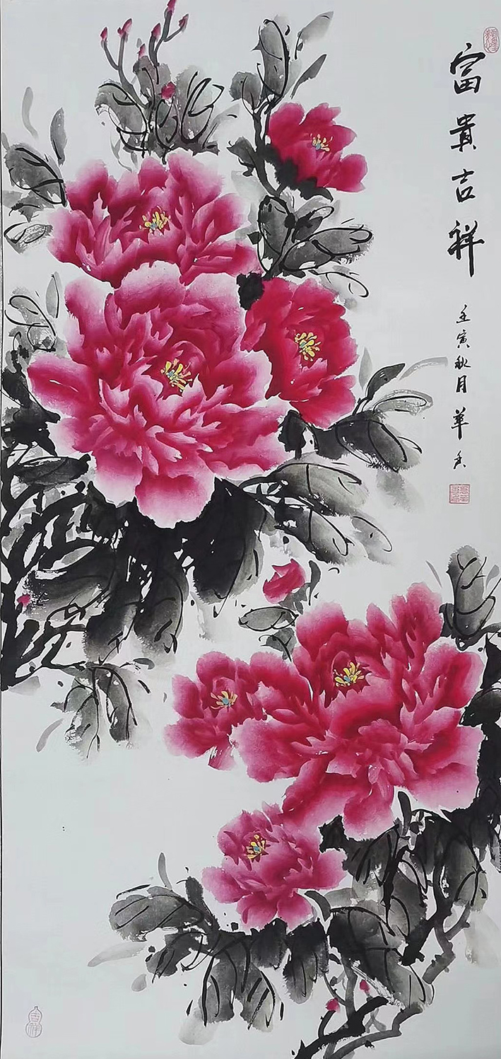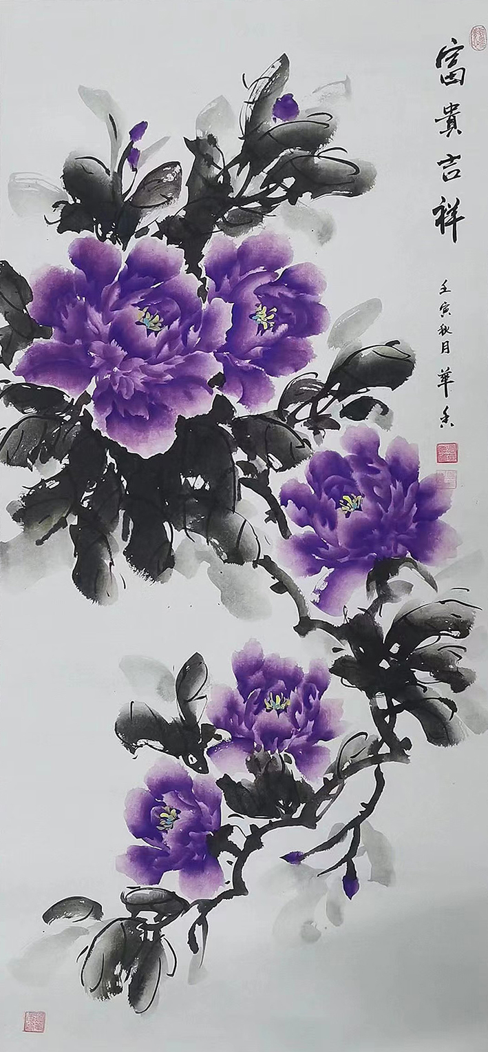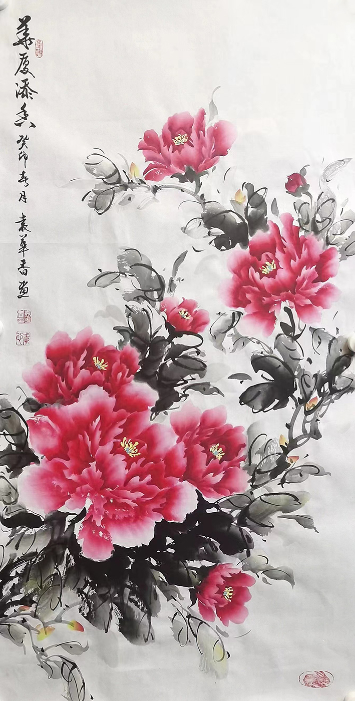 袁华香,女,生于1970年。自幼酷爱绘画,但由于家境原因,与绘画失之交臂! 93年开始创业,从事零售行业近30年,在创业成功后,不忘初心,回馈社会,坚持做公益事业13年,传递正能量,用爱心证明着自己的价值!为圆幼时梦想,提起毛笔开始学习国画,偶遇会派牡丹创始人李会老师,严己求教,笔耕不辍,将对艺术的热爱倾洒于笔端,所作国画作品更是充满灵动与洒脱,俗话说:画品如人品,观画即能看到艺术家的内心深处,柔中带刚,刚柔并济,画出了非凡的气质,这与画家多年来深厚的功底和发自内心对绘画的热爱是分不开的。