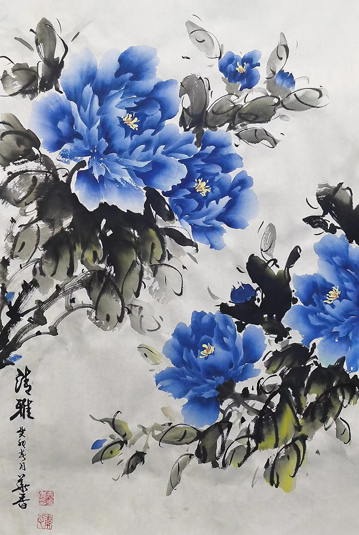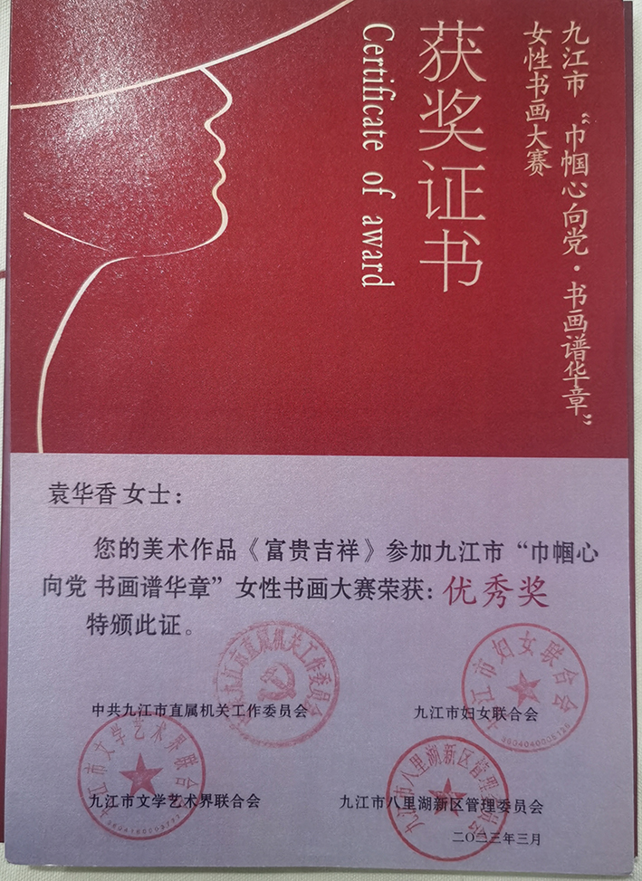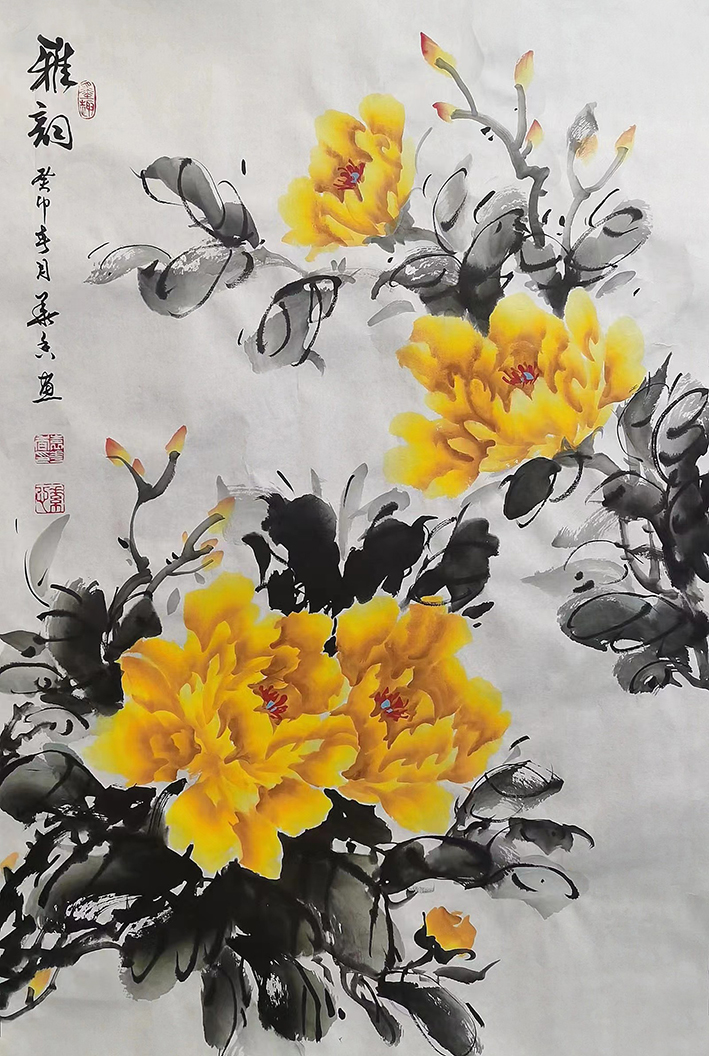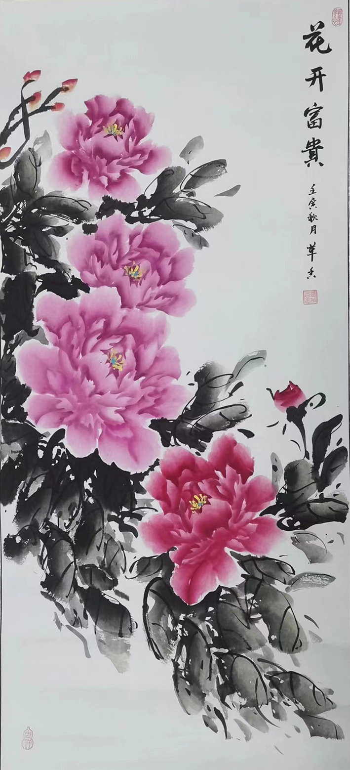 袁华香,女,生于1970年。自幼酷爱绘画,但由于家境原因,与绘画失之交臂! 93年开始创业,从事零售行业近30年,在创业成功后,不忘初心,回馈社会,坚持做公益事业13年,传递正能量,用爱心证明着自己的价值!为圆幼时梦想,提起毛笔开始学习国画,偶遇会派牡丹创始人李会老师,严己求教,笔耕不辍,将对艺术的热爱倾洒于笔端,所作国画作品更是充满灵动与洒脱,俗话说:画品如人品,观画即能看到艺术家的内心深处,柔中带刚,刚柔并济,画出了非凡的气质,这与画家多年来深厚的功底和发自内心对绘画的热爱是分不开的。