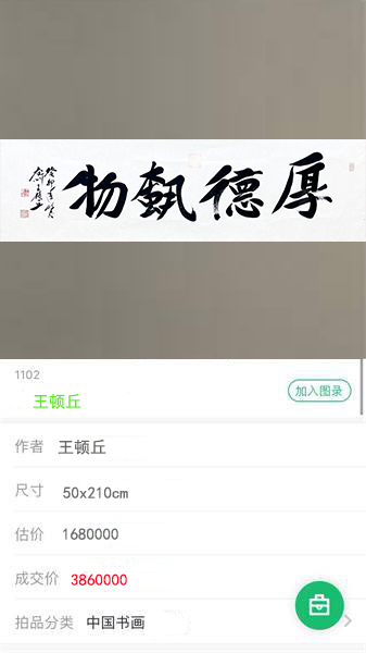 2012年万达以50万的价格求得王顿丘先生书法作品“厚德载物”此举表明,万达已将收藏目标放于王敬中先生作品之上。