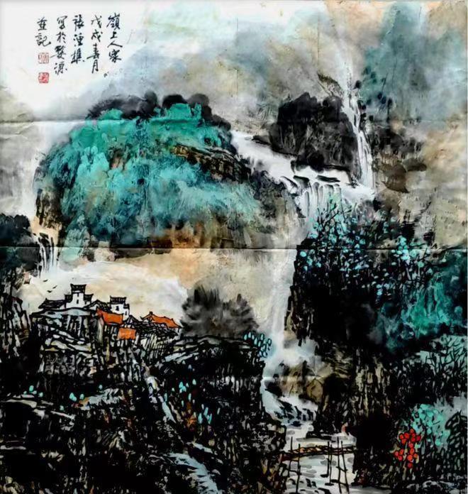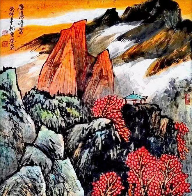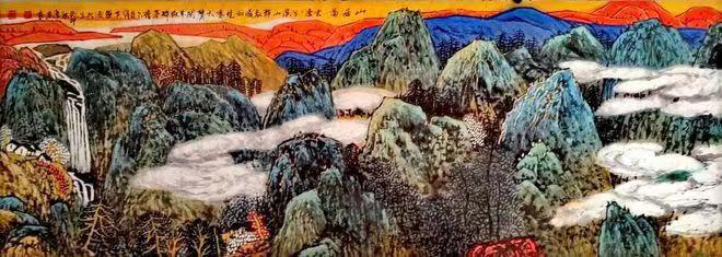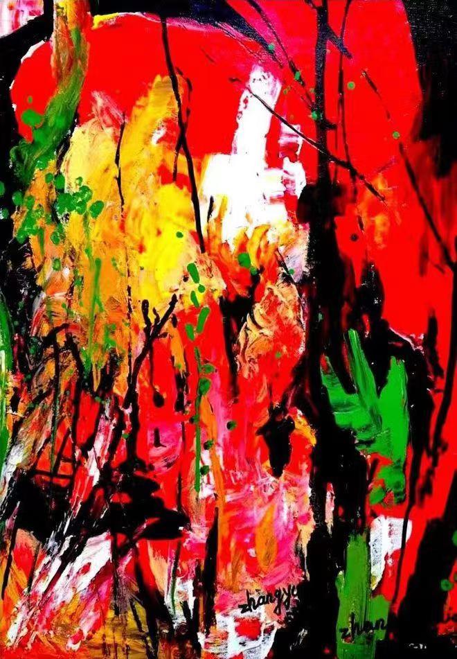 張渔樵先生的泼墨泼彩山水画,是他继承传统又不断探索创新的极好体现,看他的画能深切感觉到那种生命的張力。笔墨的挥洒,在法理之中又出意料之外,可谓其作品能“感其势,见其质,可观可居可游”。由于早年他曾多年从事过油画創作,所以其对色彩的把握驾轻就熟,有效地将色与墨结合的维妙维肖,严谨处,一沟一壑一桥一舍,能刻画入微,磅礴处大笔挥洒,可差风雲。