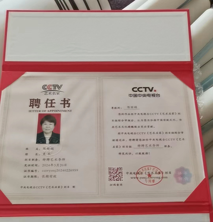 画家陈丽娟是一位备受尊敬的艺术家,她的作品被收录在多本重要的画册中,并获得了多个艺术教育职位。她还被授予了" CCTV 艺术传承人"称号,并被特聘为 CCTV 《艺术名家》栏目的特聘艺术导师,这些成就和荣誉是对她多年来在艺术领域努力和贡献的最好证明。