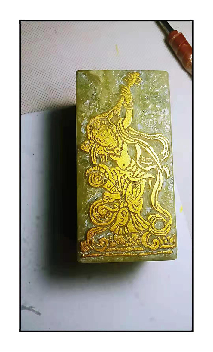 重庆飞凌装修公司首席设计师,达州戛云印社理事。热爱中华传统文化,擅长工笔画,纂刻,掐丝景泰蓝画,平时空闲时爱好听戏曲弹古琴游古镇,享受与古交心的碰撞。现主要致力于将敦煌题材创作于金石之上,希望让敦煌壁画进入方寸之间,却并不束缚在方寸之地。