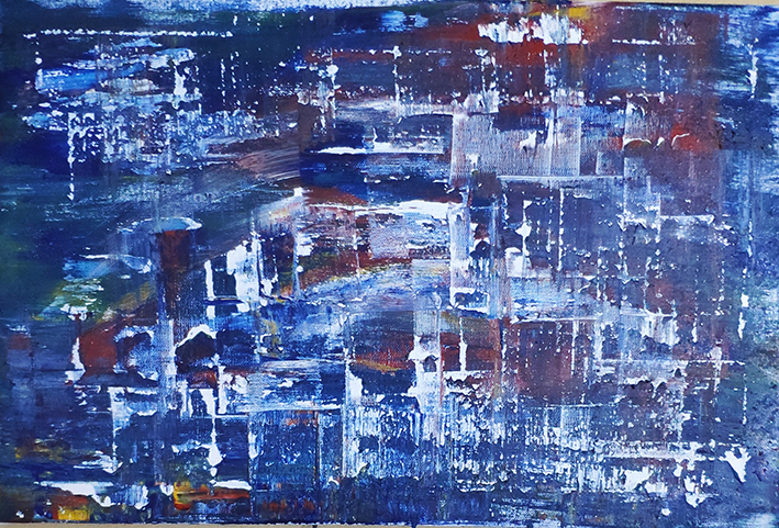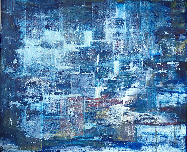 她多层次的艺术造诣和学养,使得她血液里渗透着艺术的多重元素,她虽有不落世俗的诗词才情和穿越天籁的作曲天赋,但她大部分的时间却在画室孜孜不倦,默默无声地用油彩在亚麻布上,耕耘着一幅又一幅的意象油画。