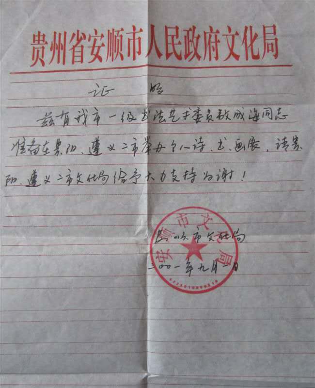 贵州安顺人。自小学习书法艺术至今40余年从未间断。1985—1987年在