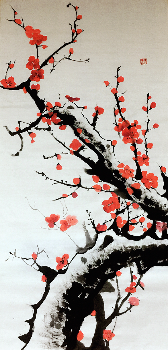 他笔下的肖像人物形神兼备,栩栩如生,山水梅花竹构图宏大,意境旷远,其山水竹作品通过水墨展示出朦胧美意境,远景淡若轻烟,意境空灵纯净,云雾缭绕,仿如仙境,如亲临神秘圣地。