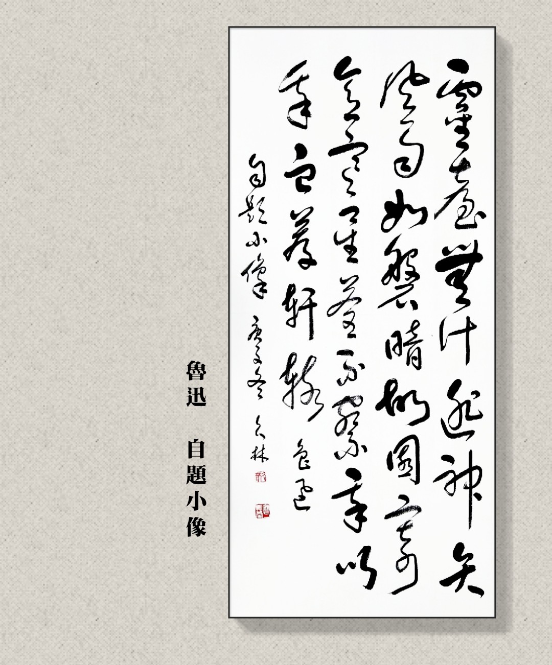 淼淼汀江水,悠悠客家情。一方水土养育了一方儿女,久林先生出生于国家历史文化名城---美丽的汀州(现龙岩长汀),悠久的历史给这块神奇的土地留下了许多珍贵的文物古迹,积聚了深厚的文化底蕴,也滋养了久林先生的天赋与学识。有人为之题曰“意静不随流水转,心闲还笑白云飞”。此种锦上添花的美意,我们自然能理解。书法艺术技能描摹能写,而眼光胸襟却断然难学。久林先生胸纳广博,取法乎上,深藏学书之乐,乃是成就未来大作为之格局。“海到无边天作岸,山登绝顶我为峰”,当是对久林先生的书法艺术涵养和高尚情怀最好的诠释和表达。