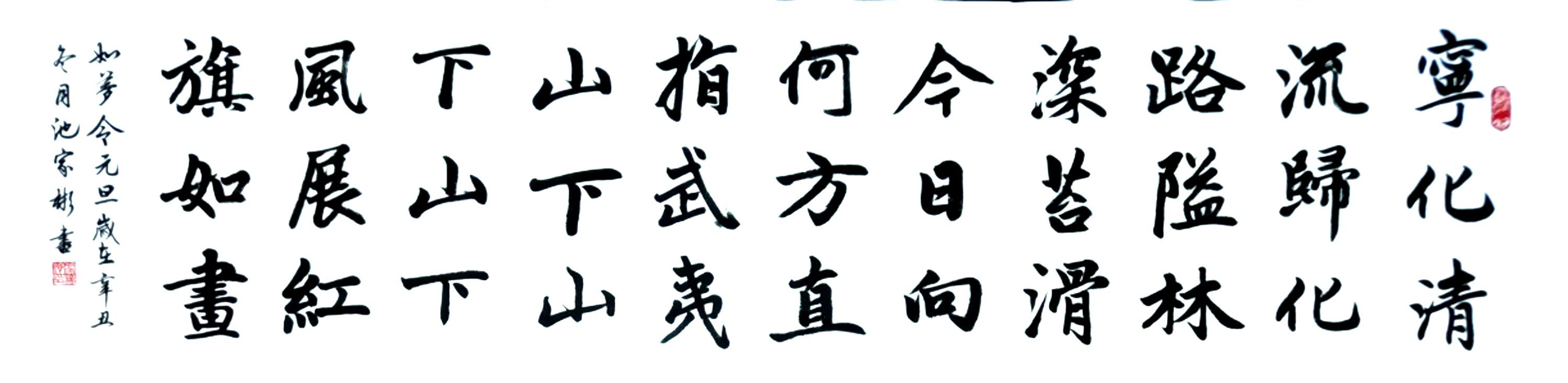 池老师从小酷爱书法,不断致力于研习楷书、行书、隶书,精研体势,广采众长,形成了自己独特的艺术风格。他的字体骨格清秀,潇洒飘逸。作为青年书法家,池老师深得学生的喜爱,是学生们的良师益友。从事书法教育多年的池老师,多次带领学生参加各级书法比赛,屡获佳绩。
