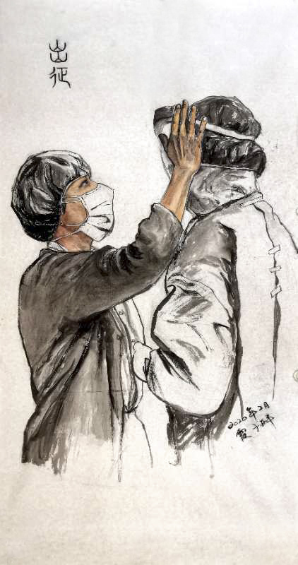 2020年国画《出征》速写《钟南山院士写照》参与开平市,江门市抗疫美术作品线上展。