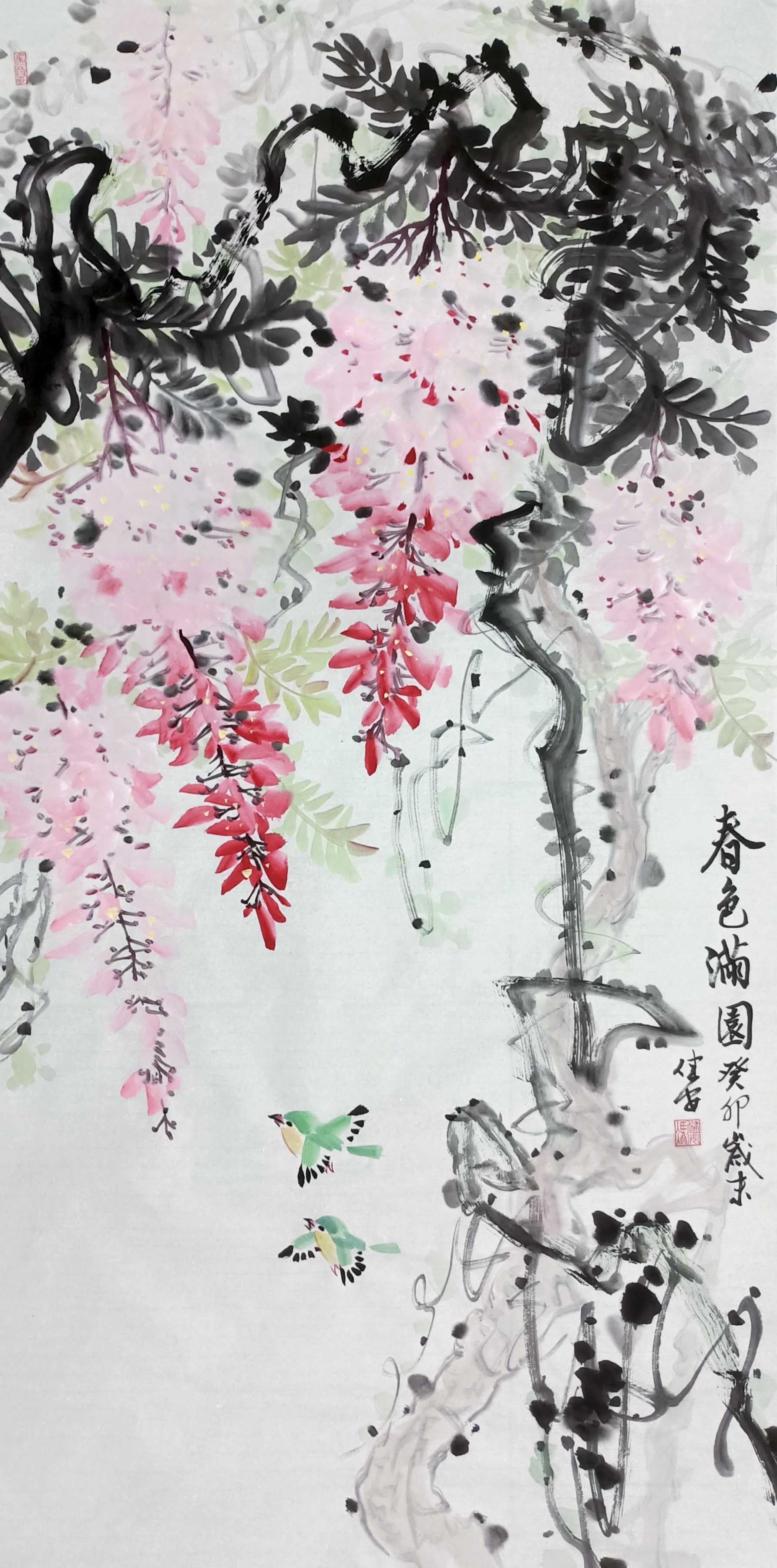 先生书法功夫上乘,再作丹青,必有以书入画的自如。题材非常广泛,山水、花鸟、人物三大门样样娴熟,在画坛也是一位无所而不能,能之则为上佳的能手。也正是因为冯健安先生作丹青诸门皆通,所以得天下英才而育之,从事美术教育数十年,有学高为师,身正为范的功德。自有画法的高能,再育后辈成才,画而优则教,这便是文化传承的丰富资粮,也是先生在艺术界得享口碑,令人尊重的重要原因。