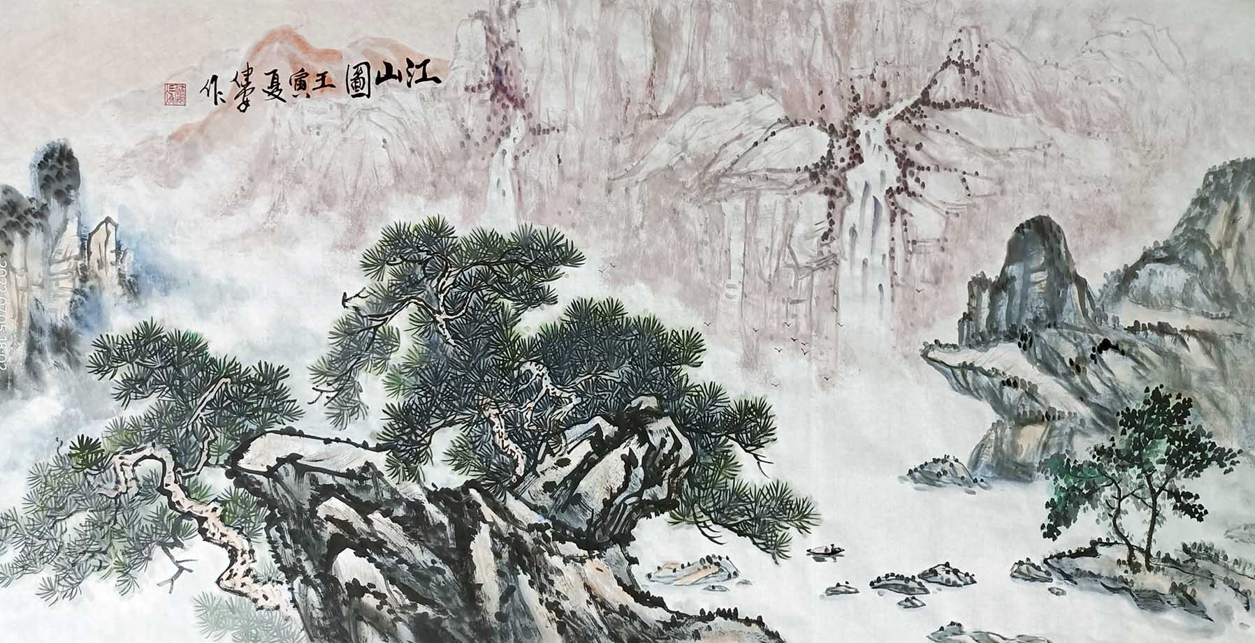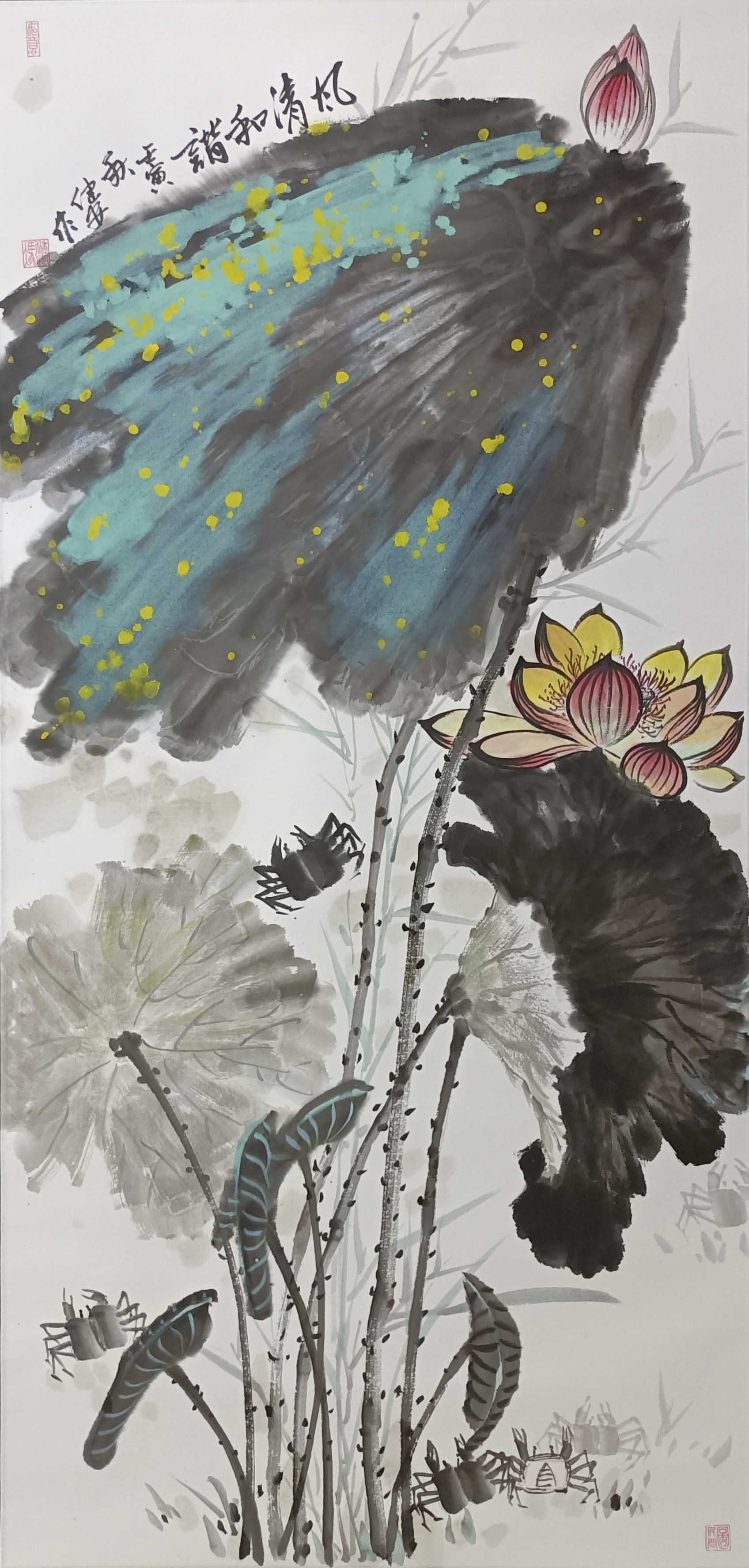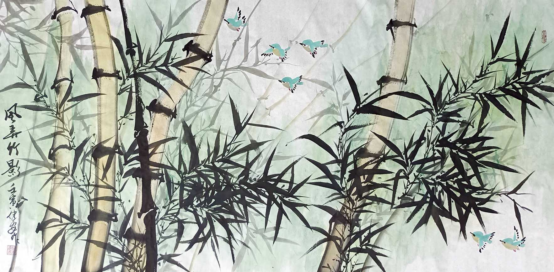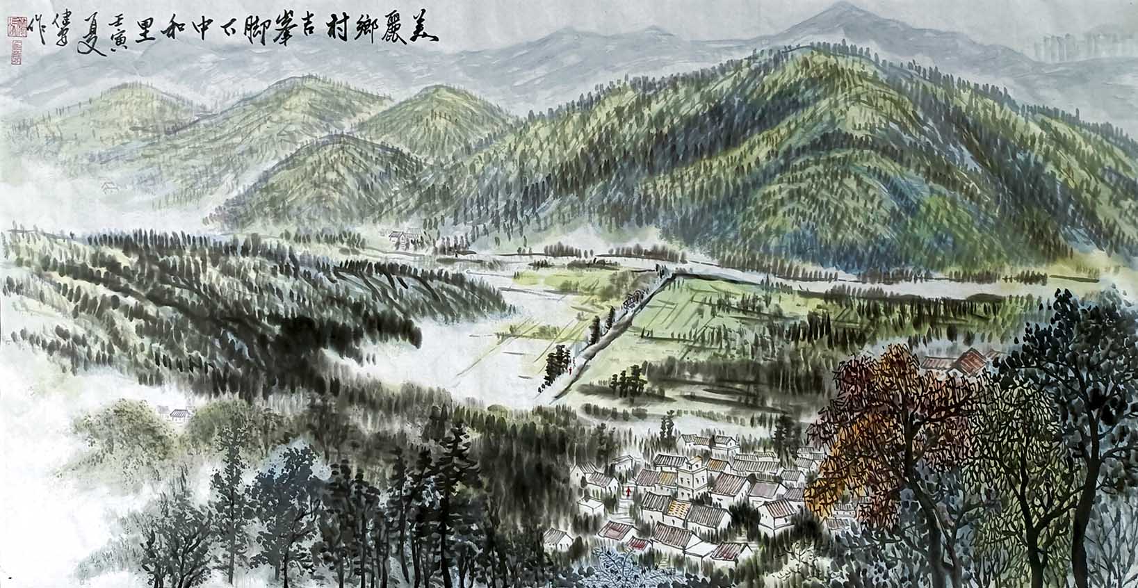 书画同源妙笔生,而笔墨所映照的正是执笔人的心襟气象与人格品质。冯健安擅国画,专攻山水、擅长花鸟,精于人物,且亦工亦写各种画路无所不精。其画作将中国画的笔墨技法与西洋画的色彩构成, 巧妙结合,墨法浓淡相宜,色彩丹青流韵,将中国画的深厚传统与民族神、时代元素相融合,从而形成“冯氏”浓郁丰富而朴素天然、结构严谨、层次分明的国画风格,画面突显雄浑大气、雅俗共赏的鲜明特色。他善用墨色变化表现物体的形态和质感, 以简洁的笔触和淡雅的色彩传达出物象的韵。在他看来,用墨之妙,在于浓淡相生,但又浓处精彩而不滞,淡处灵秀而不晦。另外要浓淡相生相融,浓中有淡,淡中有浓,浓淡结合。其笔下,不论是名山大川,人物市井,还是花鸟飞禽,都表现得苍茫壮阔,富有思想,墨法自然,耐人寻味。