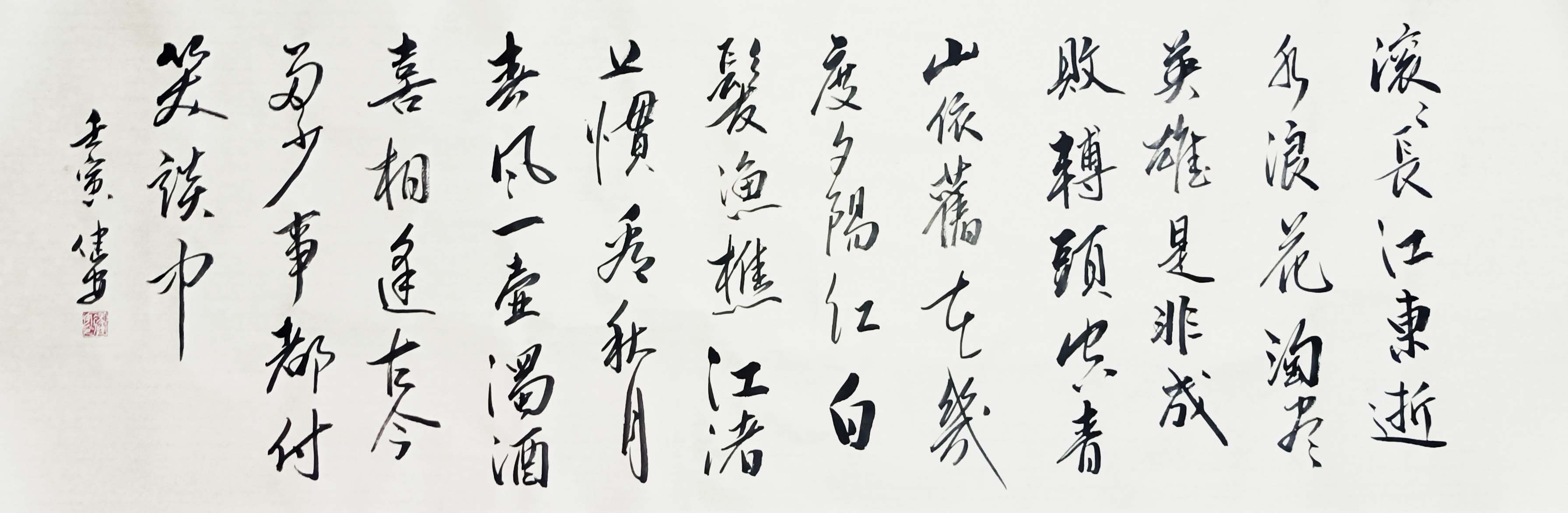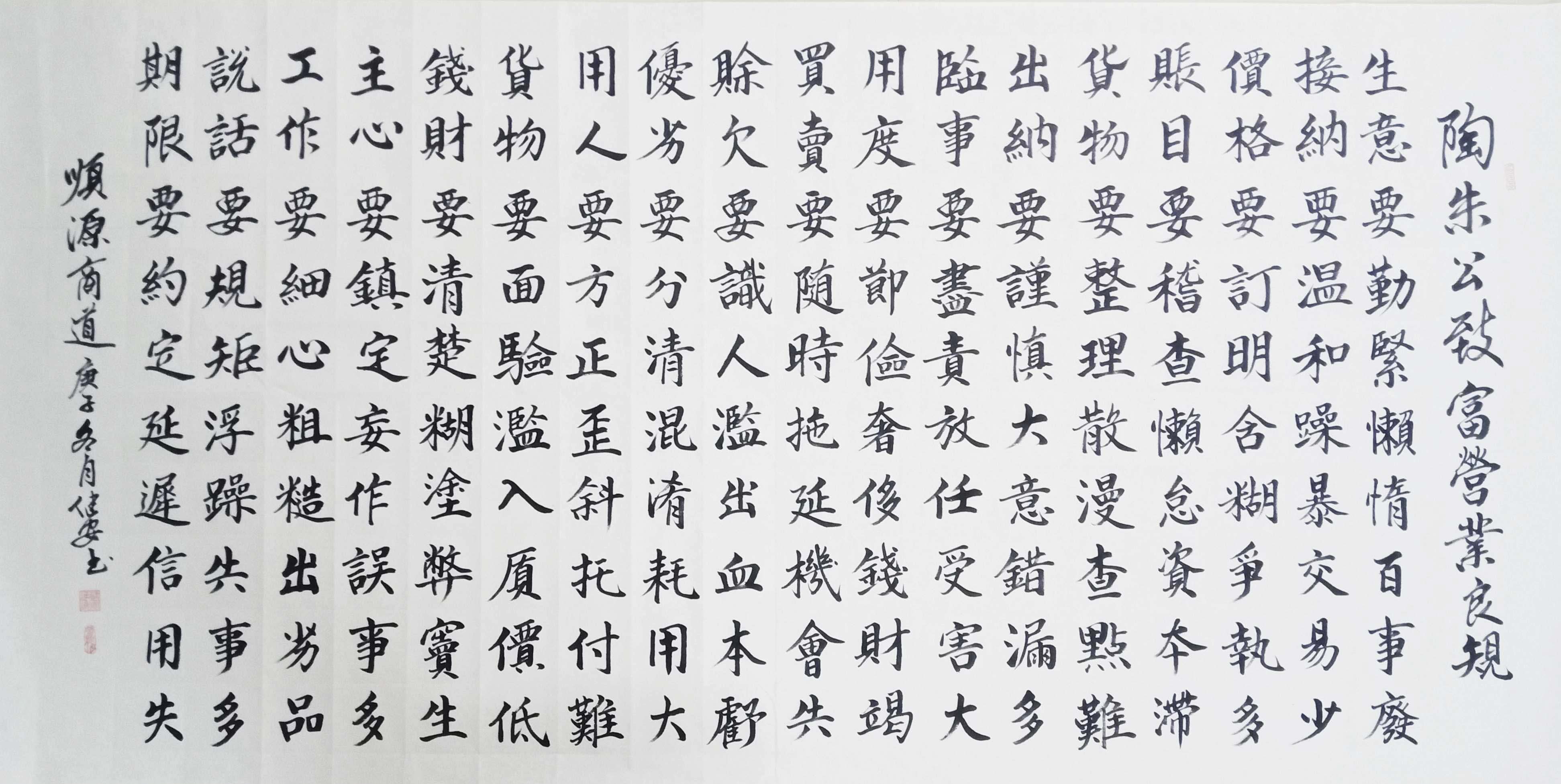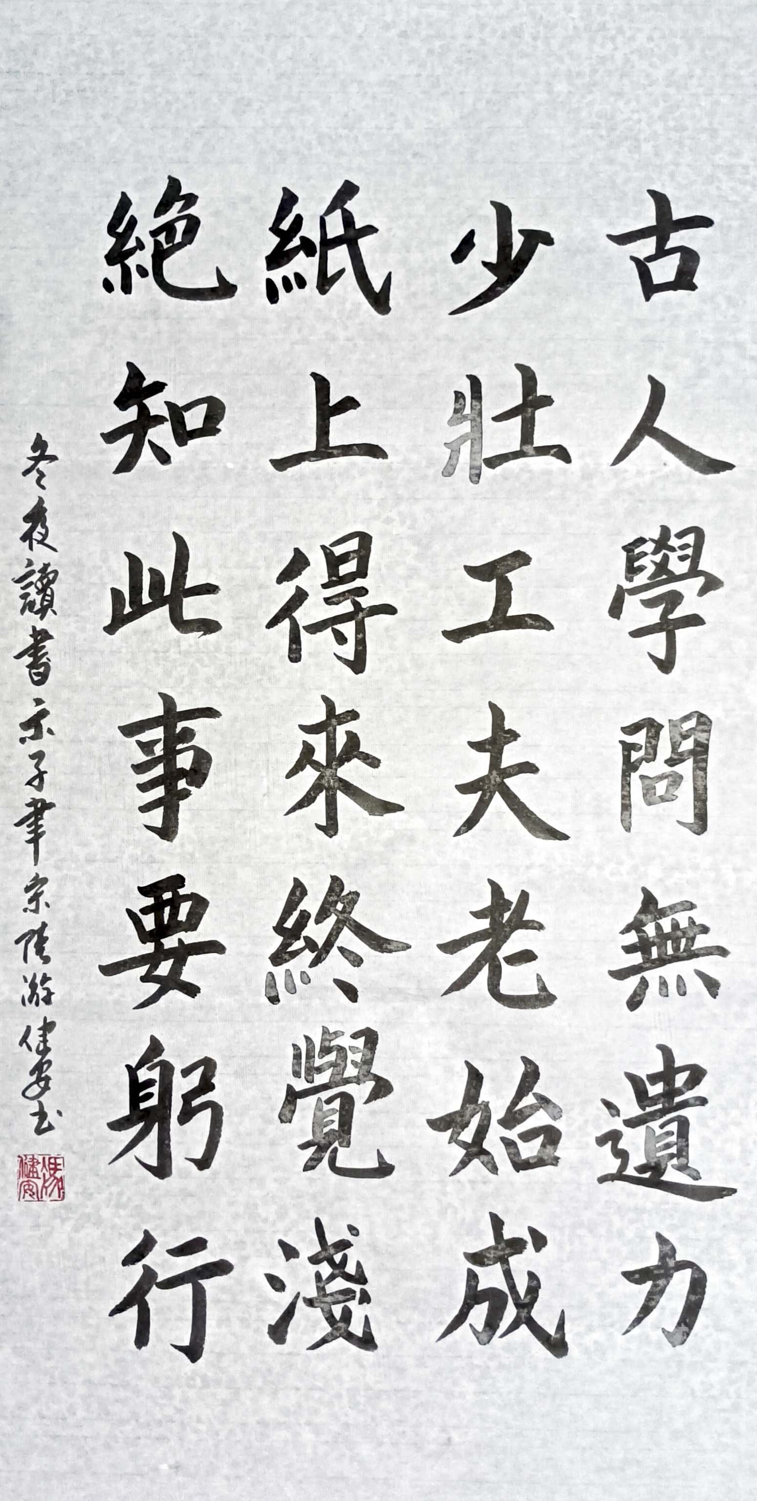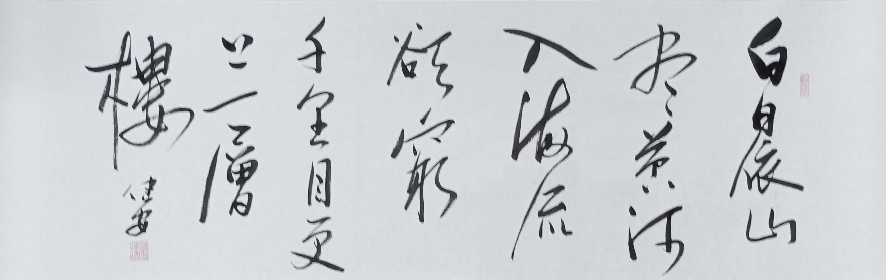 近年吾于身体健康之时耕书戏墨,随已老墓残老,余书之力未尽。看了健安的书法作品后,有所欣慰,但更多的是为其投身于执教育人的品德为之感动。并从其书画作品中得以验证,笔法雄健有力,收放自然,兰亭序的表现充分了他的艺术作品继承传统,颇显功底。在用笔的徐迟、顿挫、章法、呼应等方面遵循书法艺术传统美之要点,展现其当代新文化工作者创作的艺术涵养与艺术特点。可按现有的艺术水准加以大下功夫,五十岁可见成效。