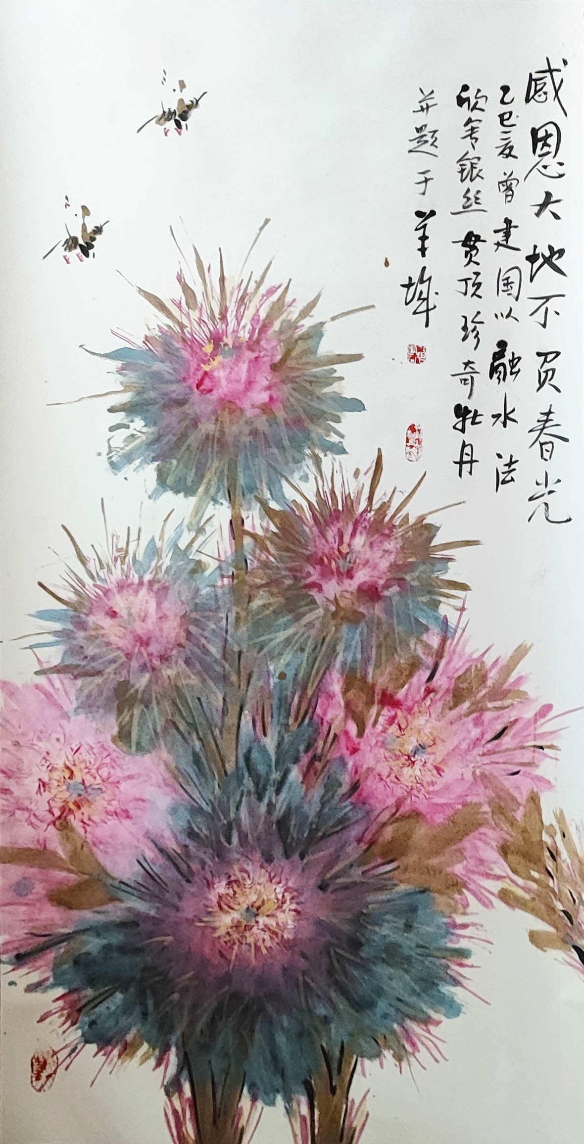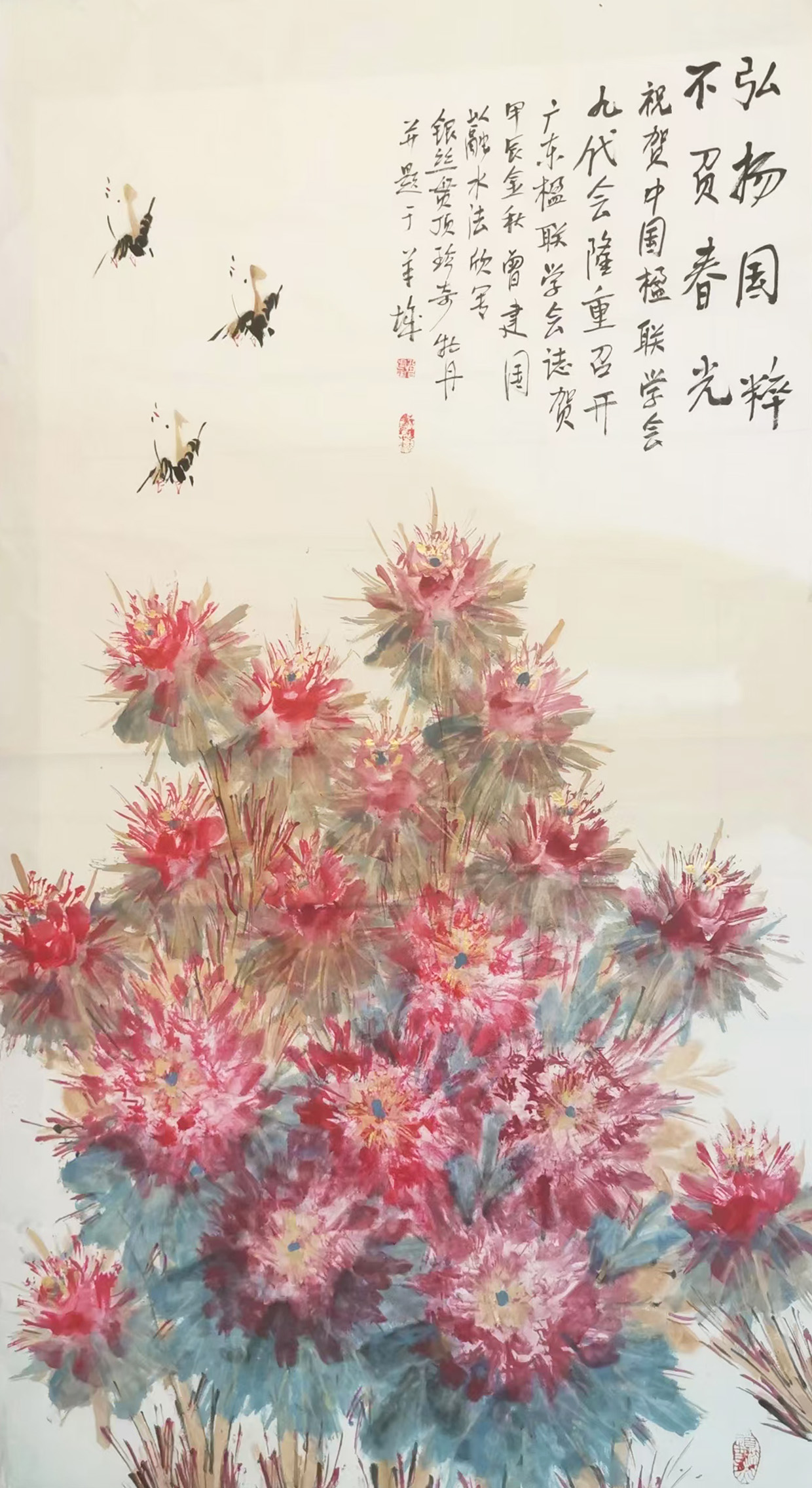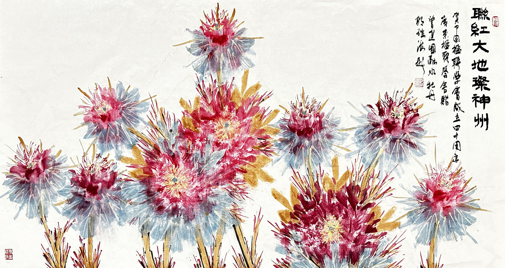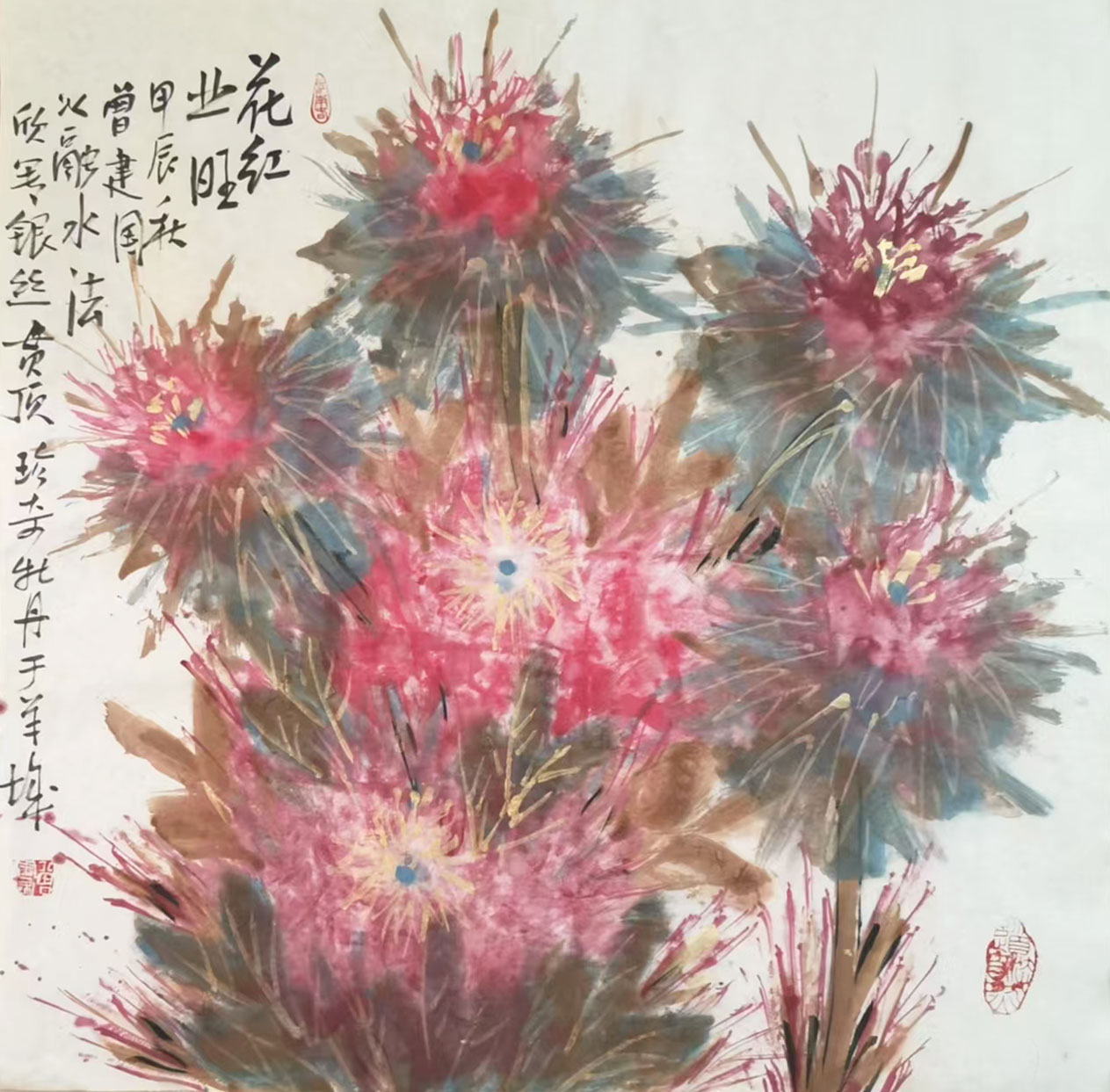 曾建国的艺术实践,体现了文化自信与创新精神的结合。他将诗、联、画融为一体,如“诗联入画是华章”所言,赋予作品深厚的文化底蕴。其牡丹画作被剑桥大学、牛津大学等世界名校收藏,标志着中国传统文化通过创新表达走向国际舞台。