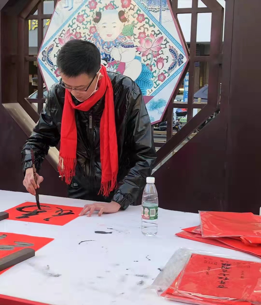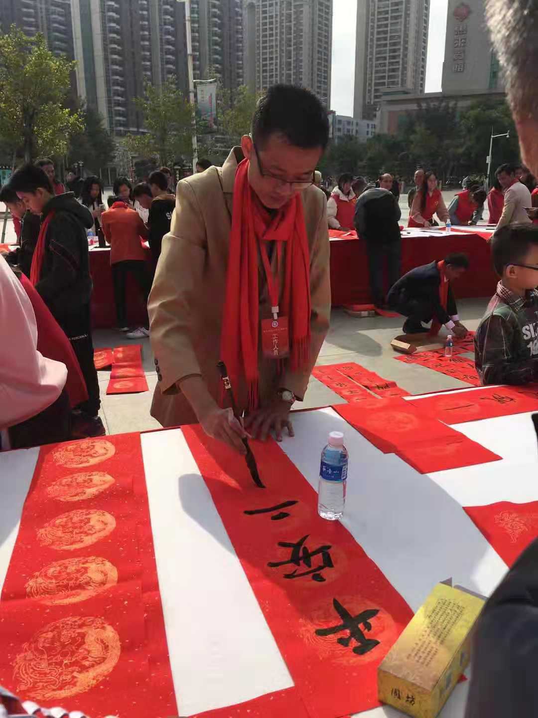 2020年1月16日上午,方乙鹏老师现场写春联,喜迎新春.写春联送福(五福田)“守初心·担使命·传文明”红色故事汇。