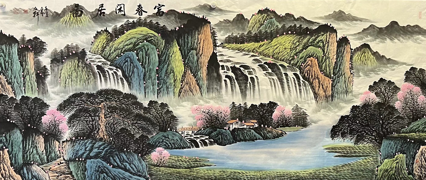 《祥居福地》是作者淡雅山水的代表作,作者多次创作、并多次获奖、在荣宝斋以28万成交、尺寸180/70