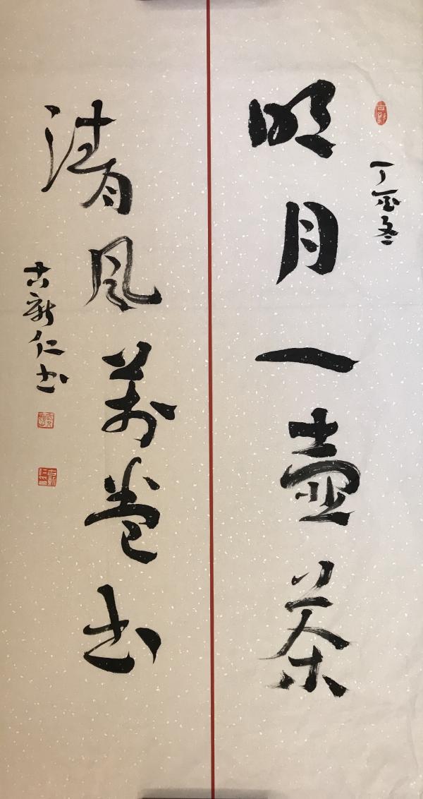 古新仁,号武岭山人,男,1976年出生,大学文化,广西宾阳县人,中国楹联学会会员,书法艺术研究会会员,中国书法家协会考级中心认证的书法中级注册教师,中国书法家协会会员,中国硬笔书法协会会员,中国青年书法家协会会员,广西青年书法家协会理事,广西青年美术家协会会员,南宁市书法家协会会员,南宁市硬笔书法家协会会员,宾阳县书法家协会会员,章草研究会会员。师从中国书法家协会副主席胡抗美工作室成员王大铭导师。自幼酷爱书法,工作之余坚持研习书法二十多年,以颜体为宗,融合巜书谱》笔法和巜平复帖》章草笔意。