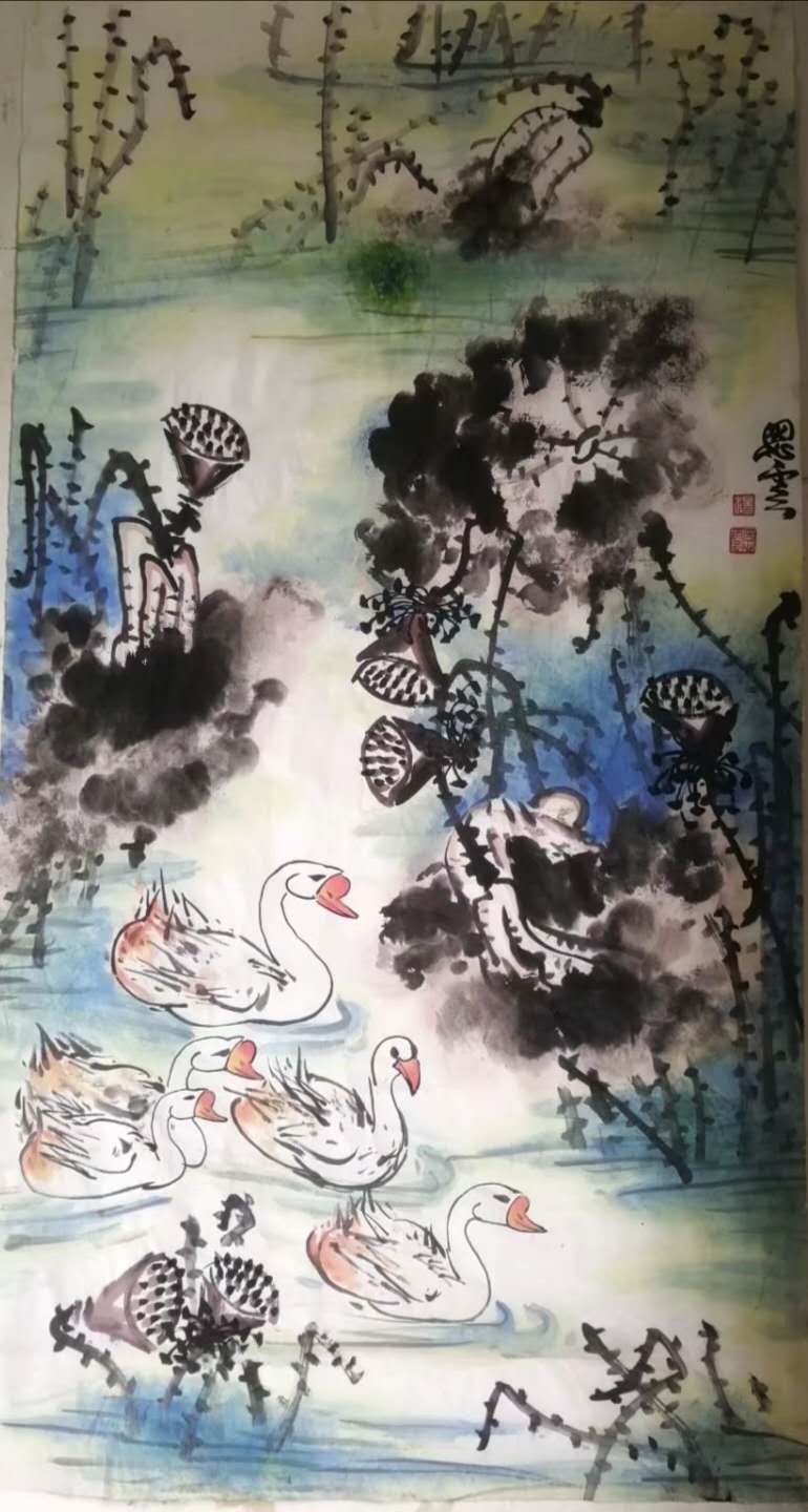 目前创作的绘画作品清新自然格调高雅,呈现出宁静祥和,寓意深远的风格的特色。