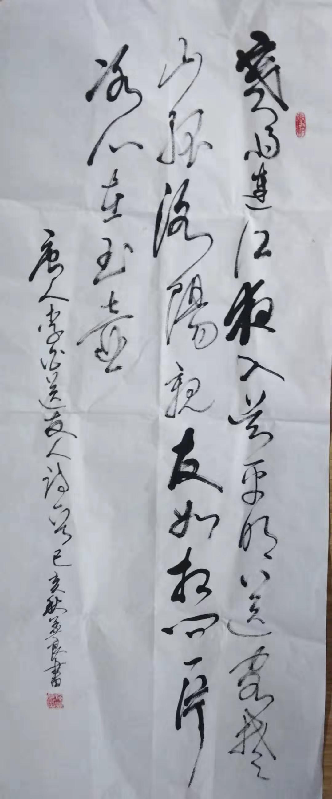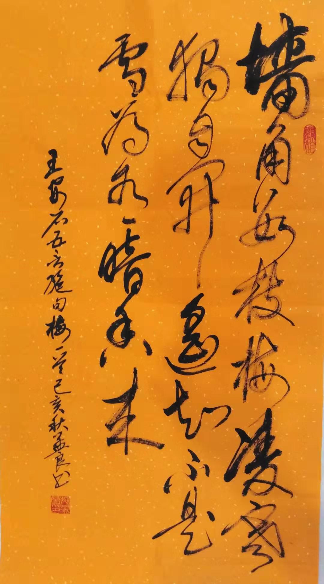 施孟良河北邢台市人,中国毛体书协会员,河北书协会员,军旅书画家,隆福书画院院长,世界华人书画协会华北分会理事。1973年参军,在国防科工委第21基地服役。在罗布泊为祖国铸造神弹的艰苦岁月里,利用大型宣传栏、墙报等多种形式,宣传党的路线方针、建军思想,丰富军营文化生活,深受广大指战员喜爱,被誉为战士书画家。1976年调入基地研究所工作,任第一研究室(时代先锋林俊德院士任主任)任政治干事。1978年全国科技大会召开前夕,组织了大规模的科技展览,利用实物、文字、书画等形式宣传、展示了林俊德院士和其他优秀科技工作者的先进事迹和科技成果,引起全军、全国的强烈反响,受到基地的表影。在部队工作的十五年里,参加了历届"神剑"军人书画展和"春雷"文艺书画展并屡获殊荣 。 转业地方工作后,仍积极参加各级书画研究和展览活动,多次参加县、市、省的书画展并多次获奖。几十年来笔耕不辍,潜心研究书画艺术,其书法深得怀素、孙过庭等书法名家的神韵,笔力雄健,灵动自然,酣畅淋漓,狂放不羁。在书画界是省市县三级会员。其作品被港、奥、深、闽、粤等地企业家广泛收藏。
