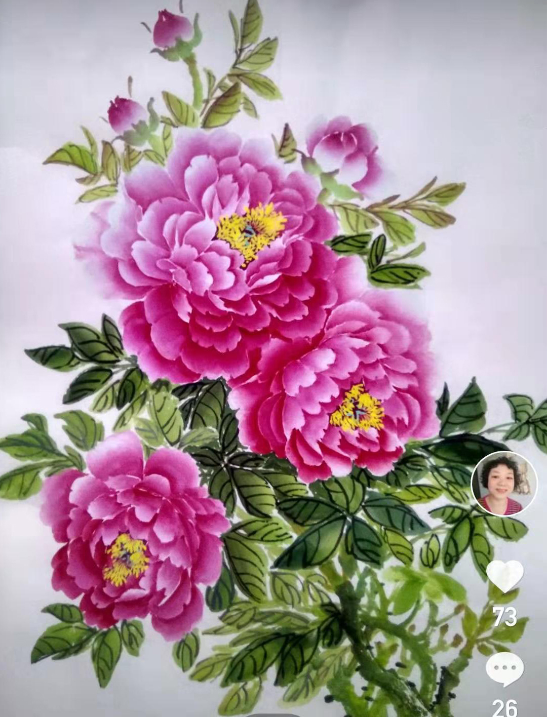 自幼爱好美术,擅长画牡丹、葡萄、烙画。得到了诸多业内大师的肯定和赞赏!她多次参加各级书画展并获奖。写意牡丹是贾玉花老师非常擅长的花表达,圣洁高雅之气尽显,色泽具有极佳的湿润度,线条勾勒清晰明朗,花与蝴蝶的搭配相得益彰,枝叶缠绕间如沐圣境,意蕴非凡。贾玉花画牡丹,擅于在不同的色调上自如的转换,突出不同姿态牡丹的美感,使得画面整体具有层次交融之感,笔法上传统意味浓郁,继承了国画用笔用墨的精髓。