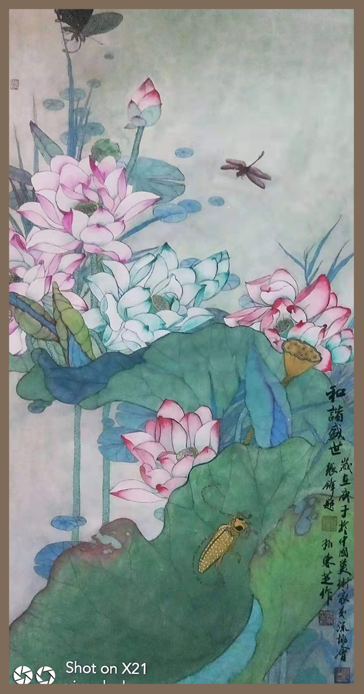 Recently, she created a few paintings, with the combination of large and small meticulous brushwork of traditional Chinese painting skills, were deeply loved and collected by the Chinese and foreign audiences.