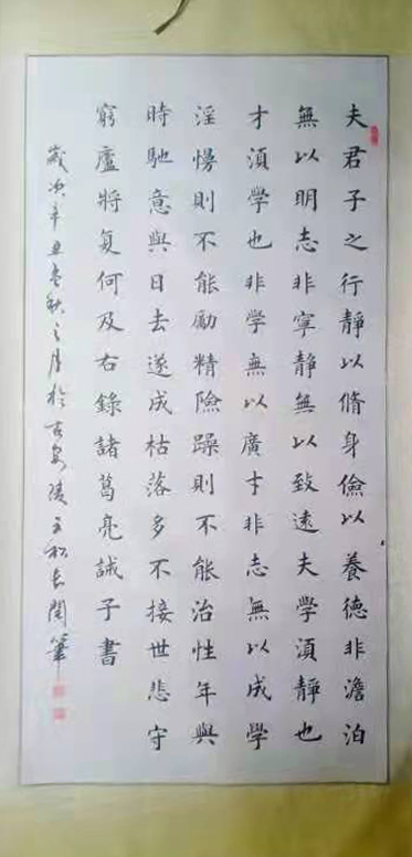 自幼喜爱书法深度临习欧阳询九成宫化度寺碑,行草力追二王,尤善小楷;对赵孟頫道德经,钟绍京灵飞经,文徵明草堂十志有较深度研究。