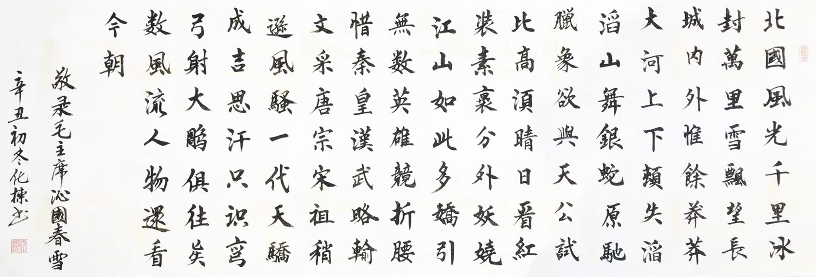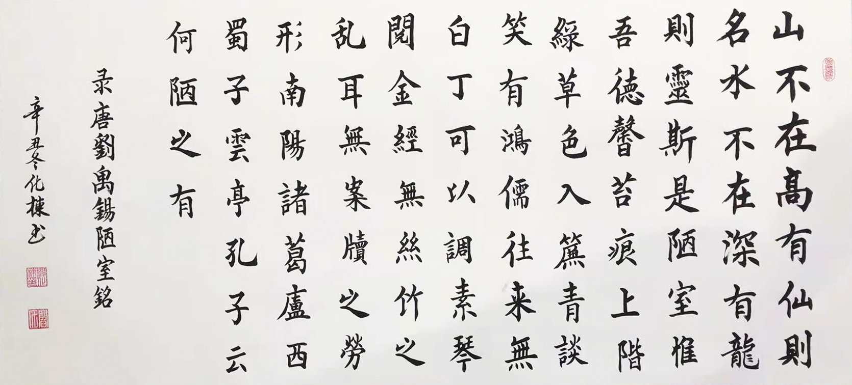 闫化栋出生于书香门第,受家庭环境影响自幼酷爱书法艺术,守望砚四十余年始终不辍,遍临名家碑帖,特别对欧、赵、颜诸体有独到见解。书法以古为师,遍访名家,有欧楷之严谨,颜楷之浑厚,字态苍劲,不乏灵秀,章法有度。