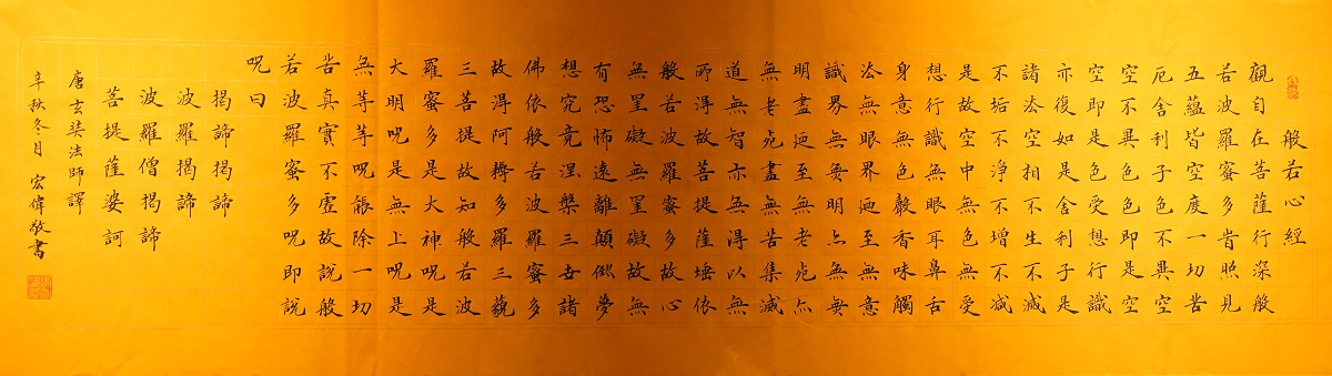 李宏伟,原名李红伟,字菊堂,1971年生,河南省尉氏县人,现居河南省郑州市,弘一法师书法艺术传人。现为中国书法家协会会员,河南省书法家协会会员,被誉为“当代心经楷书第一人”。1999年礼启功先生为师深入学习书法赐名菊堂,之后又求教于沈鹏、李铎、苏适、张安易、阚炳祥、刘俊京、龙开胜、陈洪武、王镛等先生门下。
