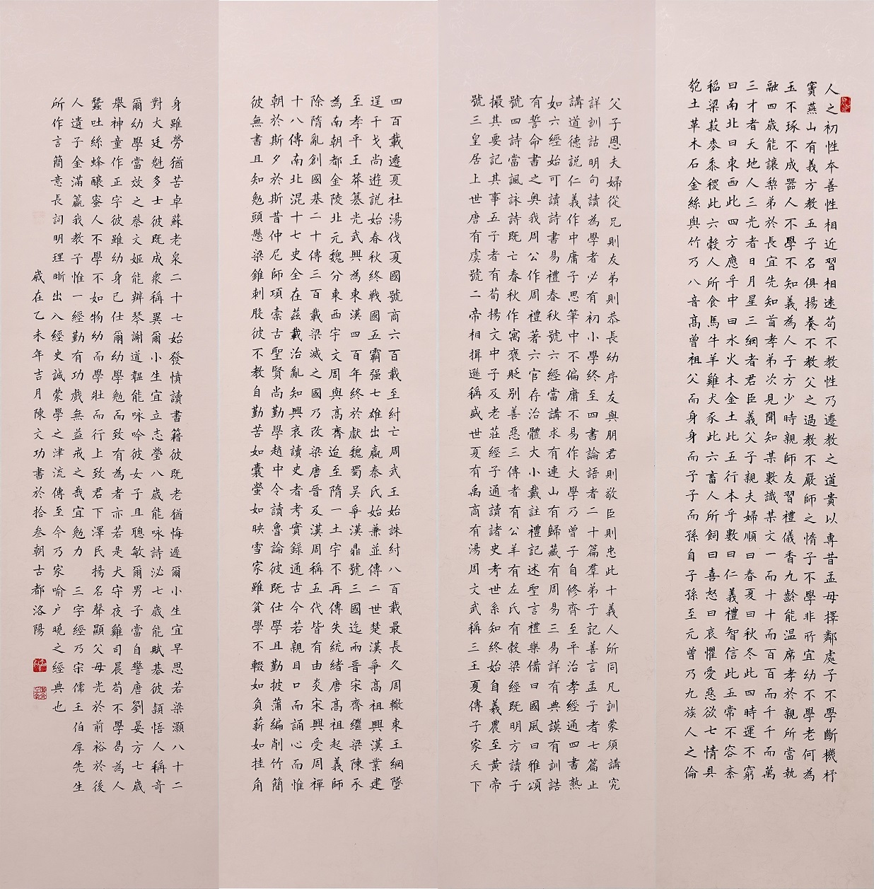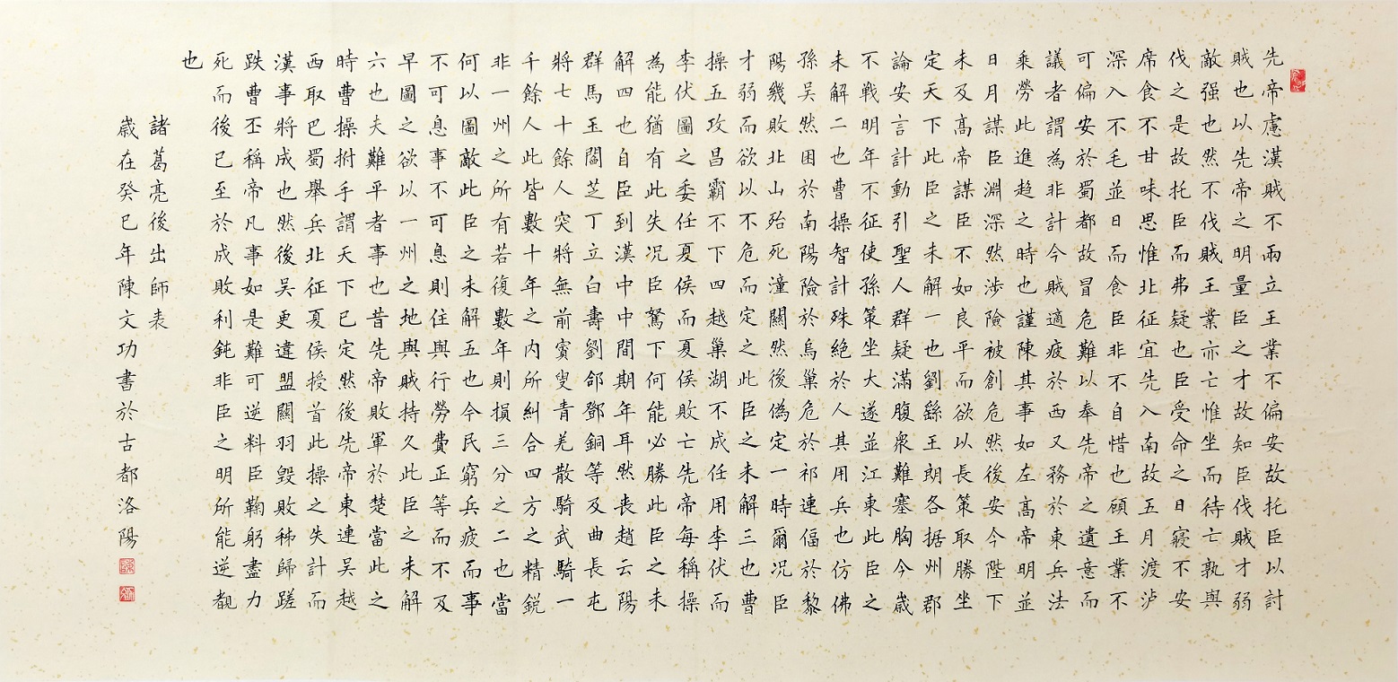 先生出生于书香门第自幼酷爱书画,六岁初临欧阳询楷书,后习颜体及二王行书,主攻小楷魏碑及米芾《苕溪诗卷》《蜀素帖》等诸家精髓,勤学苦练逐渐练出双管齐下,双手同时写不同的字,挑战了人类左右大脑同时双用的极限,曾拜汤恩伯部著名下书法家端木先生为师,几十年如一日,临池不辍,终有所成。作品集百家所长形成自己独特的艺术风格,尤其柳体、毛体见长,字迹风神洒落,入木三分;既有颜体之浑厚大气也有毛体气吞山河大气磅礴之势,运笔兼容二王灵动舒展之法则,字体古朴典雅,端庄俊秀,章法疏放妍妙,天资神纵;既有柳公权之风骨,又有颜真卿之神韵,兼有毛体之挥弘大气!