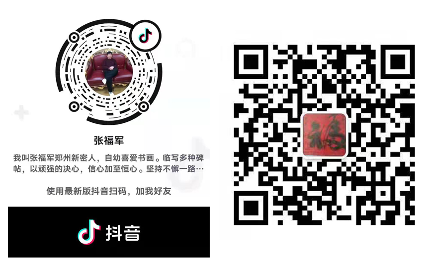 张福军,男,汉族,1964年,河南省新密市人,自幼受父亲影响,酷爱书法,临遍各种笔帖,克服重重困难,坚持不懈四十余年,不弃摸爬滚打,之后受名家指点,形成独有书风。四体皆能,尤其隶篆,尤为为擅长,作品多次在国内外大赛展出,曾获多种荣誉称号和奖项,作品曾多次刊登《中国书法》《大华书苑》荣誉周边省市,深受广大书法爱好者的信赖,作品风格朴实.自然,贴近生活,继承传承做人原则,发扬光大,敢于创新,培养兴趣,用信心修炼用恒心历练,用平常心对待,看淡名利广交好友,天道酬勤!