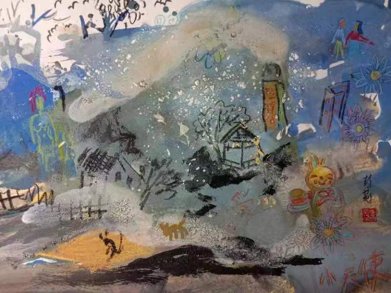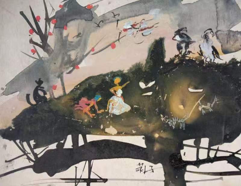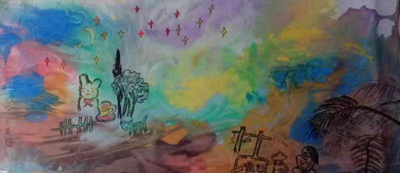 擅长花鸟、山水、泼彩 ,其经典之作《梦幻之都》系列,充盈着童趣、幽默、意念、情欲,凝滞着由块状和丰富绚丽的色彩相融合,甚至出现留白的现场感 ; 天使、女人、男人、动物、风景等,这些意象化和人格化的元素,皆是她内心被打开的欢乐音符。