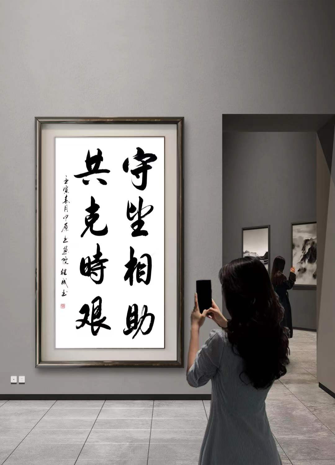 继成幼染书道,师承二王。后临颜柳欧赵之精髓,十年如一日,临池不辍,终有所成。作品以行楷见长,擅榜书,字迹风神洒落,入木三分,观之情驰优游,气势贯虹,大有王羲之风骨!