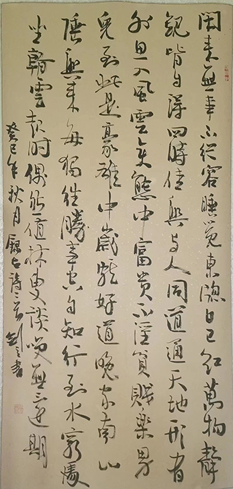 杨老师自幼喜爱书法,先后临摹二王及颜.欧.柳.赵,苏.黄.米.蔡等古人法帖,由于杨老师天生豪爽大气,对草书情有独钟,曾师从于李明.李双阳等著名书法家,潜心研习二王.张旭.怀素.黄庭坚等古今书法四十余年,对王羲之《十七帖》、怀素《自叙帖》、张旭《古诗四帖》、黄庭坚《廉颇蔺相如列传》等各种古贴临写的出神入化、超凡脱俗,其书法作品严守古法.泥师不古.不激不厉.风规自远的特点在书法界造诣颇高,作品颇受各界人士好评,后在继承前人法则的基础上又融入自己的元素,使作品更具艺术特色,形成了自己笔走龙蛇.行云流水.激情飞扬.豪迈奔放的大气风格。杨老师经常说:“书法是文化,草书更是文化中的精华,书卷气息是其精髓”。所以杨老师练就了古今结合的高水平书法艺术。杨老师从事书法创作四十余年,曾数十次在全国及省市各类书法大赛活动中获奖,其作品被中国书画博物馆.名家书画艺术品交流基地等单位及各界精英人士收藏;但杨老师仍不满足于现状,他对艺术的追求永无止境,对自己要求精益求精,他将用毕生精力去弘扬中国传统文化,提高自己的同时也把书法艺术发扬光大。