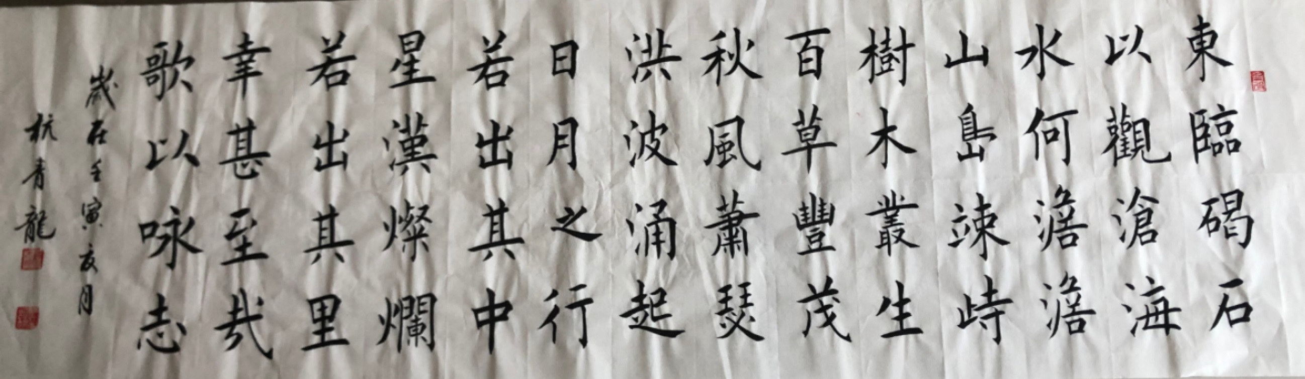 年近六旬的杭老师不知不觉在书法的海洋里遨游四十多年了,被多所学校聘为书法授课教师,杭老师经常说“艺无止境.永远都在学习的路上,再写四十年咱也赶不上古人”,低调的言语.虚心的态度注定杭老师必将在书法界成为一颗耀眼的明星。