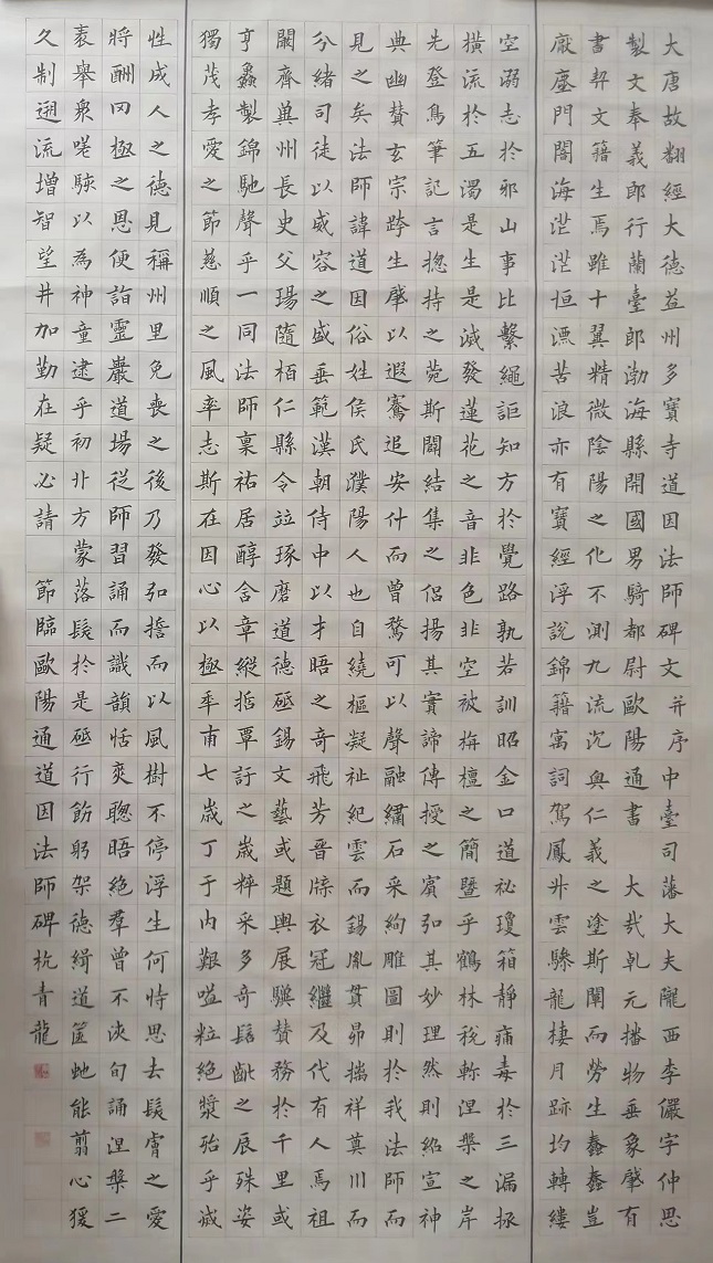 以优美的字形.严谨的结构深受各界人士好评。尤其在楷书方面更是出类拔萃.尤其擅长欧楷古帖。