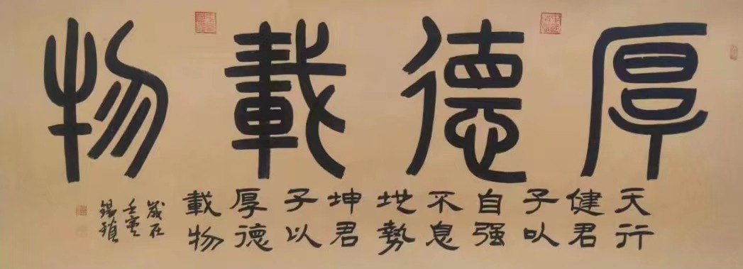 《厚德载物》2014年与欧阳中石共同参加古文字书法展入展作品;2016年全国书画大赛荣获一等奖,同年被央视主持人康辉收藏。