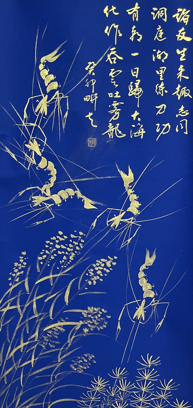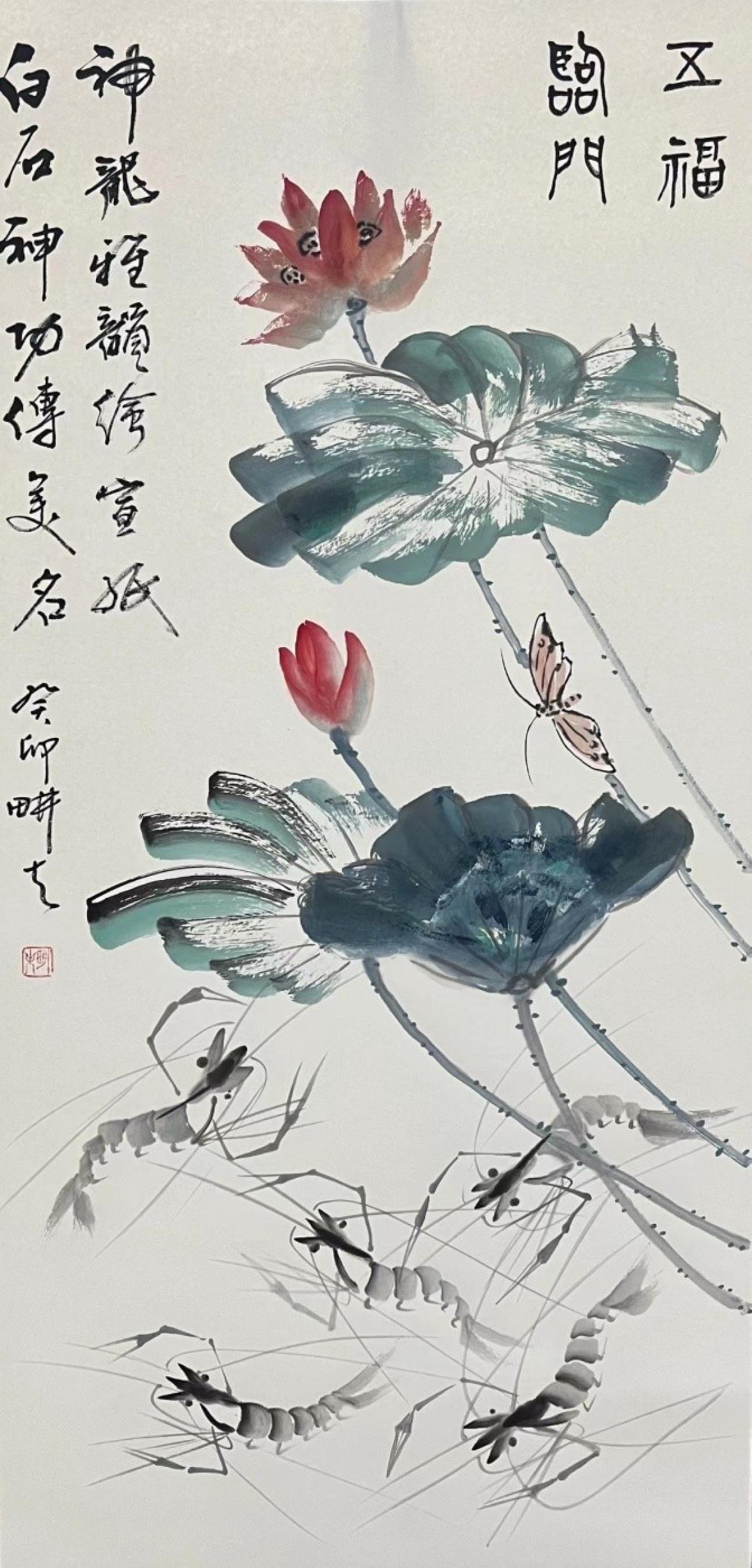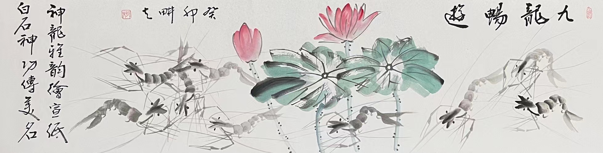 国画类:《五福临门》《九龙畅游》《虾趣图》