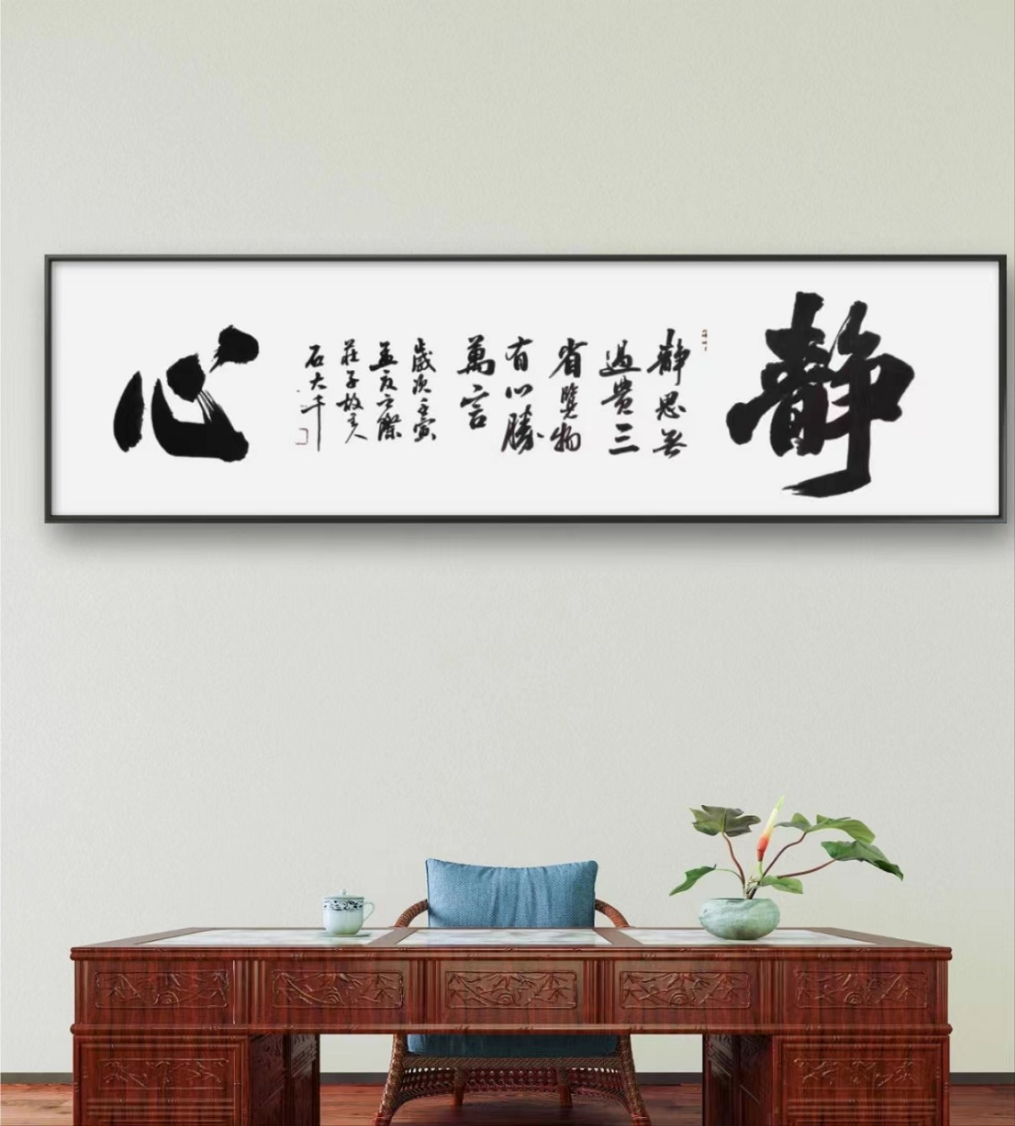 石大千先生书画双修,且在诗词,国学方面也都有极高的造诣。七岁在邻居一老私塾先生的指导下初习唐楷,二十年的楷书功夫,磨炼出了扎实的笔墨功夫,和极高的心性。后学二王钟繇,直追汉隶魏碑,对宋代名帖也进行了系统的临习,学生时代便多次斩获全国大奖。书风用笔老辣,法度严谨,大字雄浑苍劲,狂而不怪,如壮士舞剑之姿;小字清秀典雅,行云流水,妙趣横生,毫无做作之感,透着一股淡淡的书卷气,显示了及其深厚的笔墨功夫和国学文化素养。当代书法泰斗欧阳中石先生曾赞其书法:“笔法无限接近古人,诸体皆能,当世罕见也”。作品《舍得》《弘毅》《鸿业腾飞》《天道酬勤》《将进酒》《满江红》《沁园春.雪》,被人民大会堂等多家机构收藏。