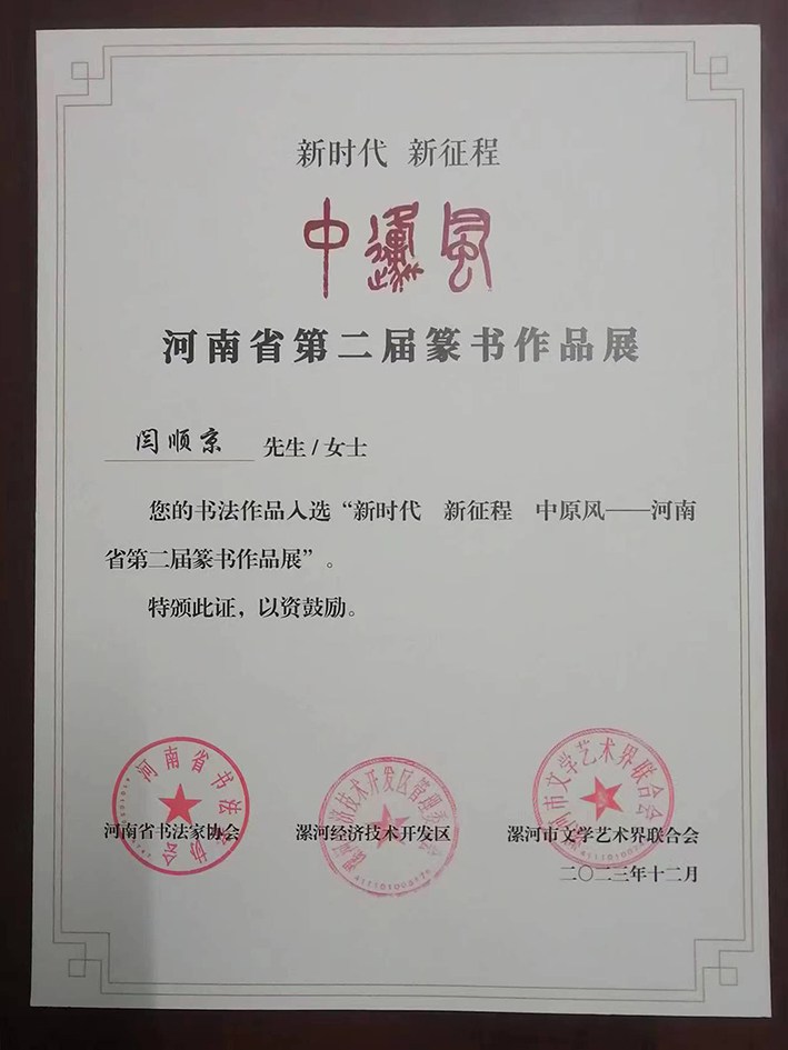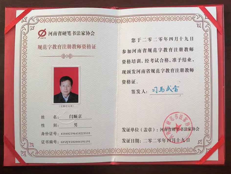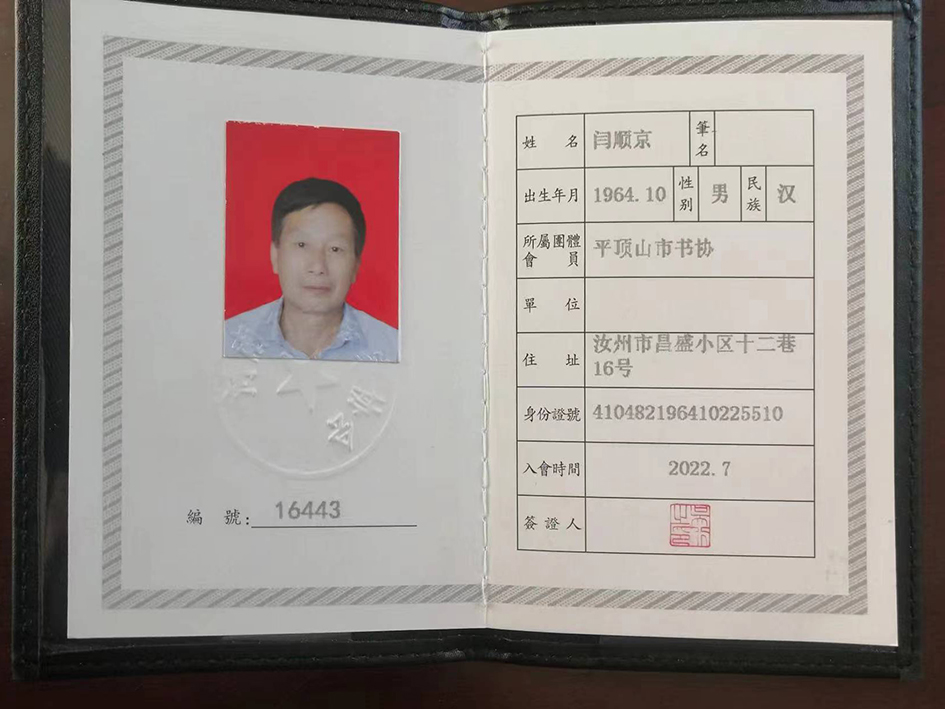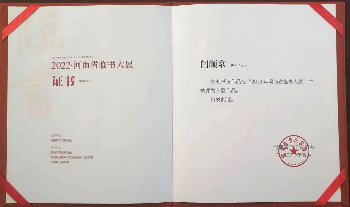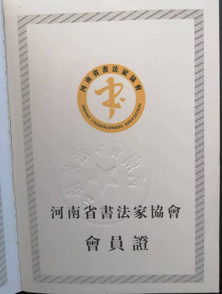 现为河南省书法家协会会员,河南省硬笔书法家协会会员