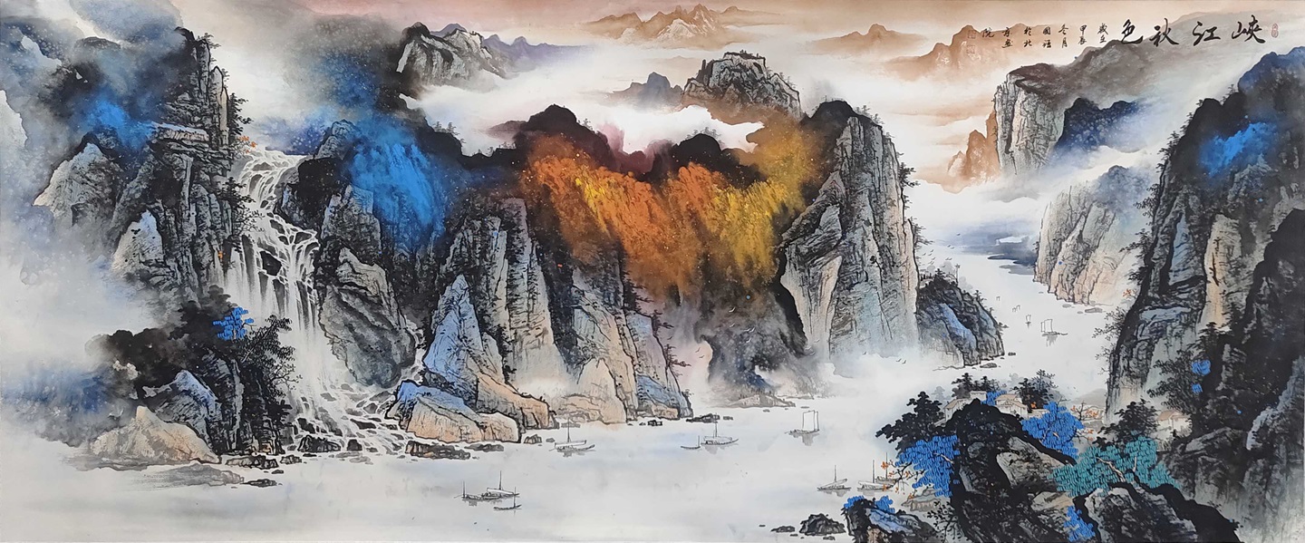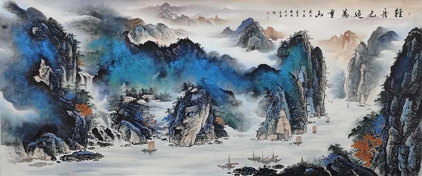 2015 年,作品《江山行舟》入选丹青郑州·第二届中国画作品展