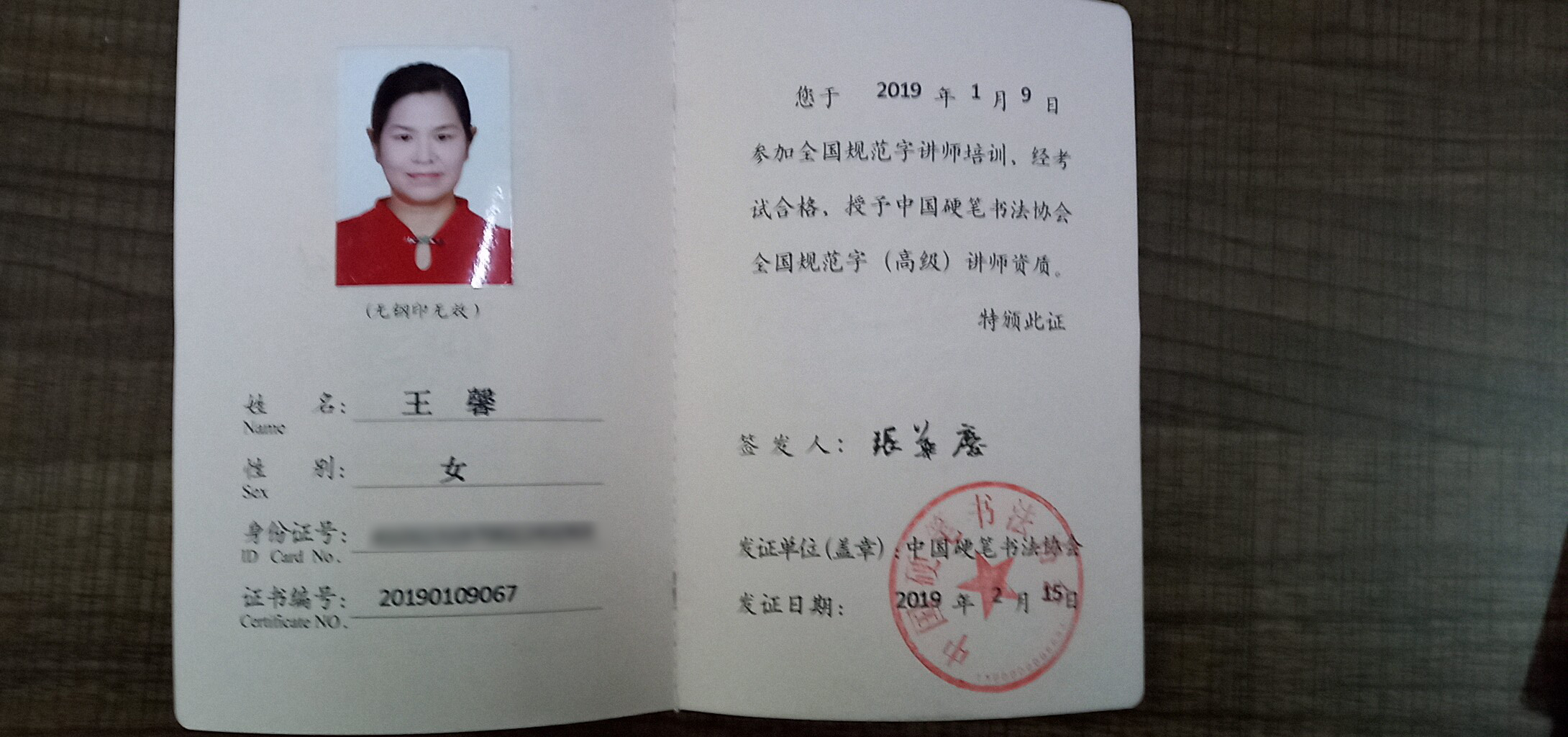 中国硬笔书法协会第七届全国书法教师认证会 (左)王馨