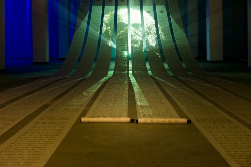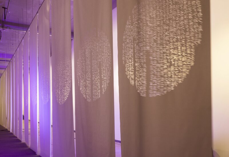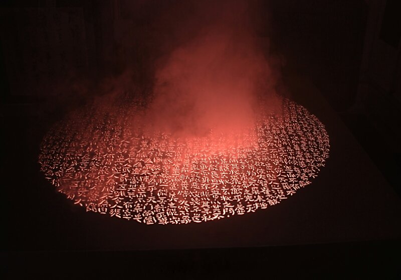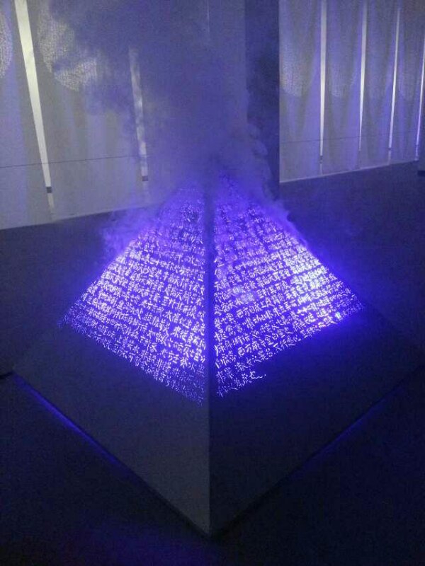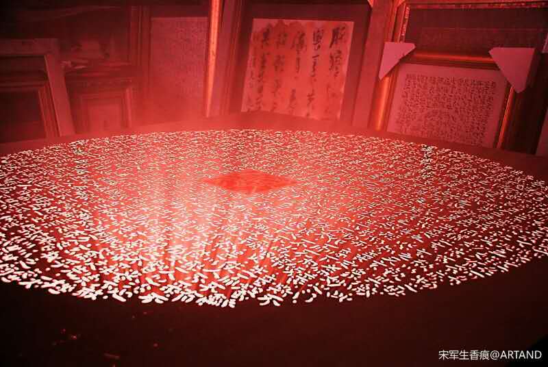 宋军生的作品表现形式是文字,表达的是文字之外的东方的文化体系。但是,他通过声、光、电、烟雾,这些这些综合语言的运用,和不同的展示形式,让不同国际的人通过作品也能看懂其中的意识形态,其中蕴含的空间装置元素是具有国际意义的。