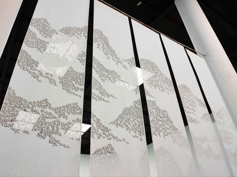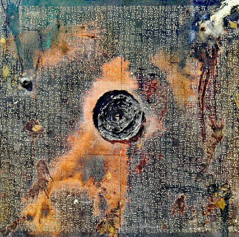 宋军生的艺术一直在思考并揭示这个问题。他和许多人一样以文字为媒介,但文字在他的艺术里不是被添加,而是被去除。他用焚香烧灼的方式将文字从宣纸或绢上去除,实则是带出放下既有认知的意识和观念。当观者透过他去除文字残留的空隙暸望文字背后的景象时,所见,乃是一片曾经被已知遮挡的未知的天地,这正是艺术渴望通达的领域。