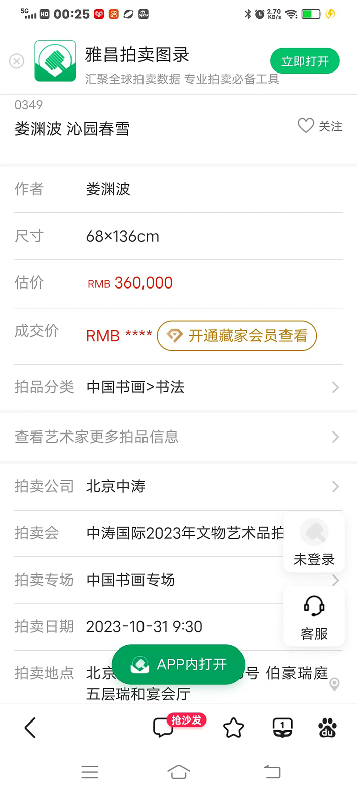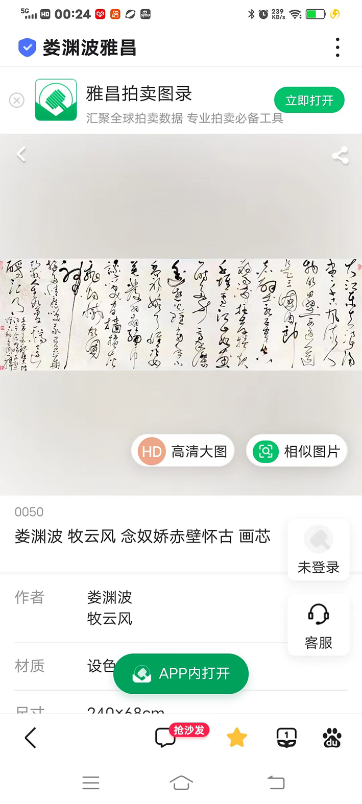 书画代表作狂草《念奴娇-赤壁怀古》,国画作品《溪山秋韵》《富山雅居图》曾在雅昌“北京传世水墨国际拍卖有限公司”-翰墨千秋2022年秋季艺术品拍卖会上,分别以188000元,380000元,280000元被拍出。