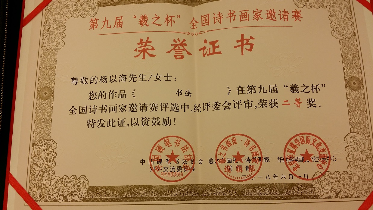 其他:参加国务院新闻办公室新闻发言人培训班,曾担任《中国劳动保障报》新闻记者;受聘中国硬笔书法协会《義之报》特约记者;喜爱文学,散文《盼》曾获空军最高学府三等奖、《读书陪伴我成长》获郑州市委“多读书、读好书”征文活动一等奖,部队期间多篇军事理论文章获军队科技进步奖。文字能力的修炼为书法艺术的进步奠定了基础。