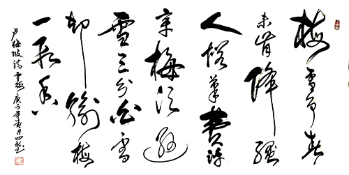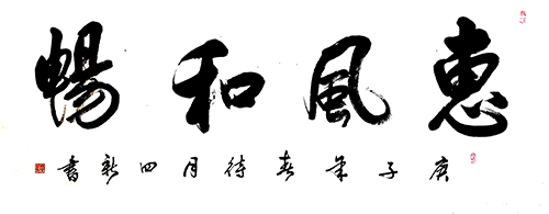 书法方面:擅长大字榜书及行草,多年潜心研究欧阳询楷书,王羲之兰亭序,十七帖,赵孟頫行书,孙过庭书谱,张旭草书,吸取古人之精华,博采众家之长,形成了自己的独特风格,其书风灵动秀美,潇洒俊逸 奔放洒脱,不媚俗。