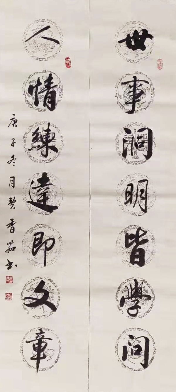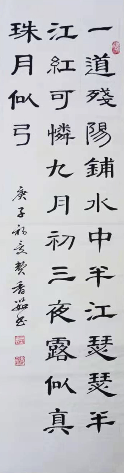 自幼爱好书法,擅长颜楷、隶书、行草。