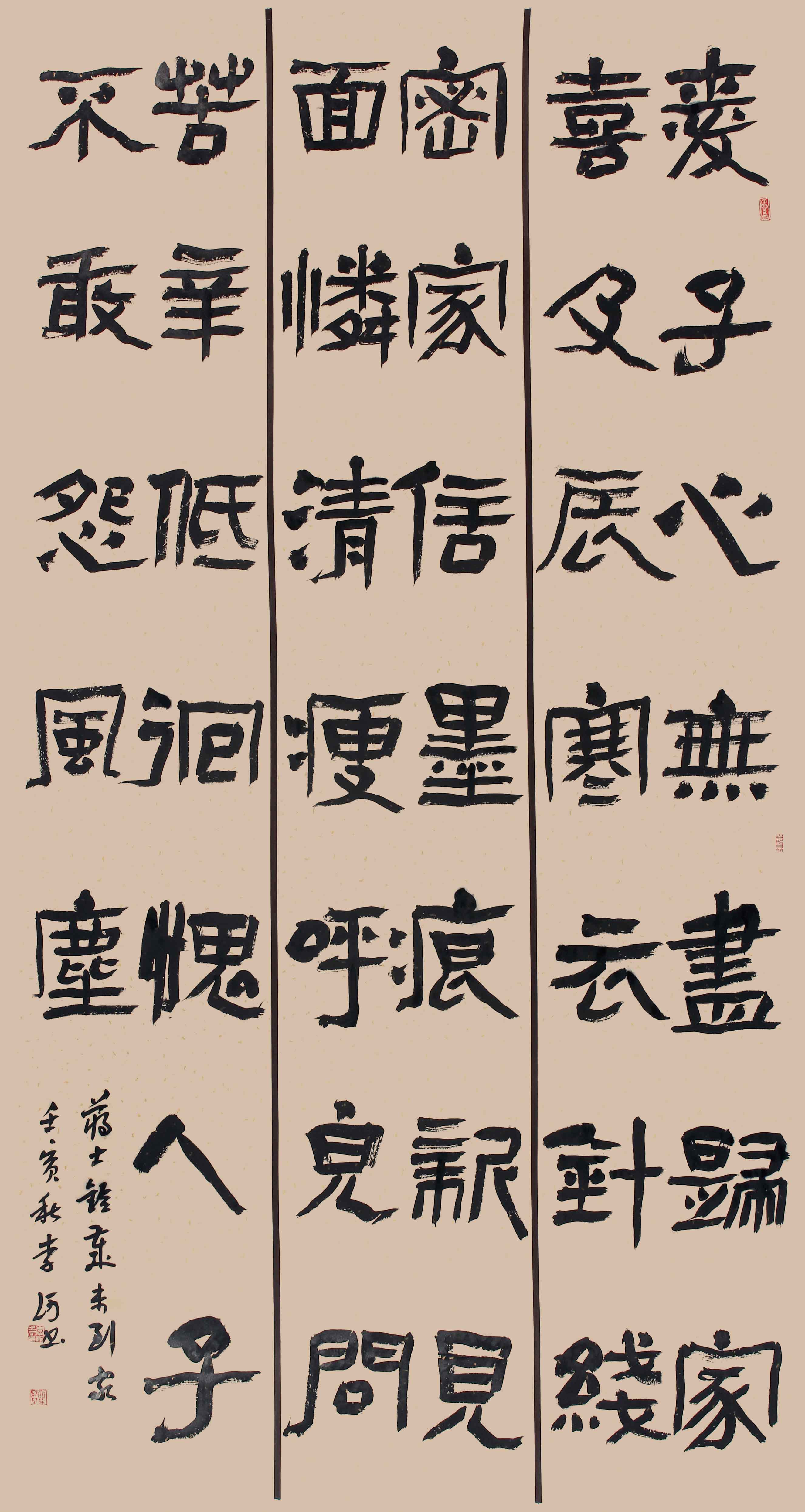 康保人,定居武汉,号塞北村野。曾在部队服役从事军队电影放映工作16年,解放军原总装备部美术书法研究院创作员、《书法报·书画天地》编辑。中国书法家协会会员、中国楹联学会会员、弘堂书社副秘书长、