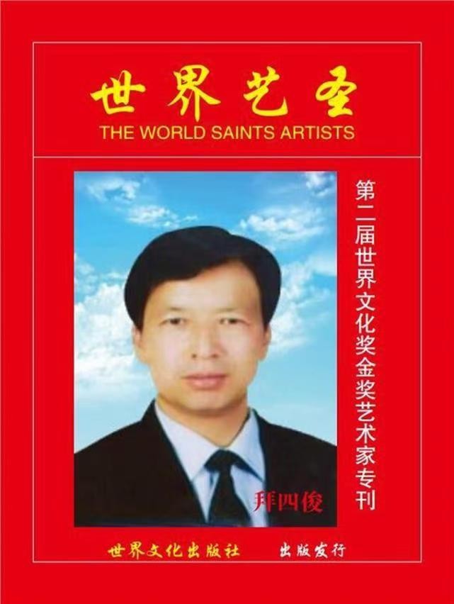 代表作品:《拜四俊语录精选》《翰墨书香》诗书画三人集、《中国国家艺术家》合刊、《中国国家艺术家》专刊、《世界艺圣》专刊、《大国榜样》专刊、《鲜红的旗帜•共和国前进路上的擎旗手——拜四俊》专刊、《百年中国•名垂青史录》《宁夏青年人才资源开发问题研究》《共青路上十余年》《奉献是人生价值的最高境界》《报国楷模•奋进新时代》《永恒的旗帜•共和国时代先锋人物》《拜四俊•纪念发行邮票名册》《拜四俊•庆祝共和国华诞60周年当代中华名人台历》《拜四俊•纪念中国人民抗日战争胜利70周年倾力“中国梦”爱国人物周历》《拜四俊•纪念辛亥革命100周年百年中华重要贡献人物台历》《拜四俊•庆祝中国共产党100周年影响力人物典藏年历》《拜四俊•百年中国100位最具影响力少数民族功勋人物》《致敬百年•圆梦中国——党旗下的中华优秀儿女功臣谱》《拜四俊•九部世界人物大典中留下名影》《拜四俊•中华人民共和国优秀共产党员大典》第一二三版封面人物之一等。