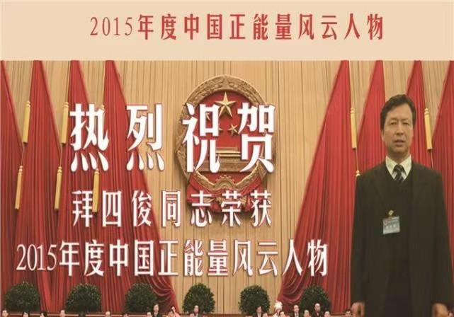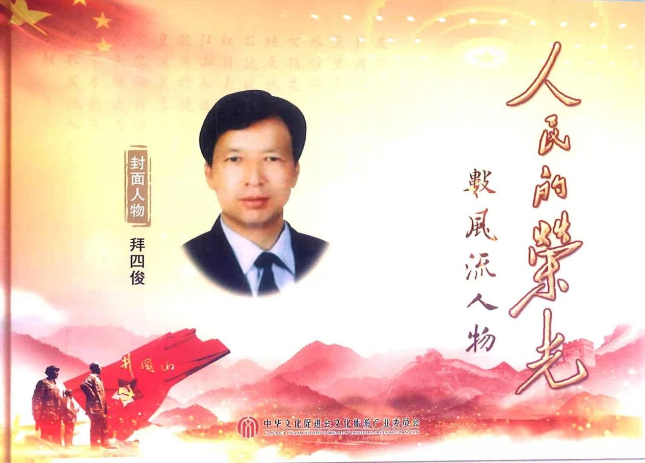 在由毛泽东思想学术研究会编写,中国文化传媒出版社《中华魂•当代人民功勋》中,他被评为“共和国建设十大杰出功勋”(档案号:zhhL2015-9776)。并以不问回报勤奉献 赤胆忠心为人民——记共和国建设十大杰出功勋拜四俊为题,对他进行了宣传报道。