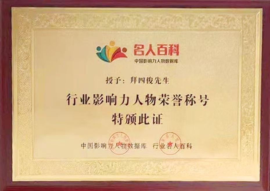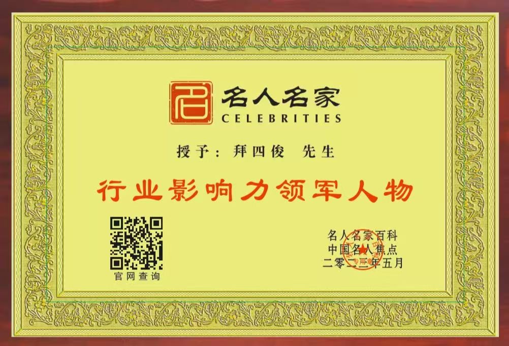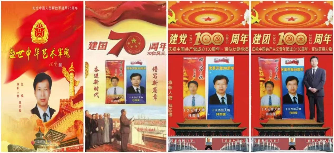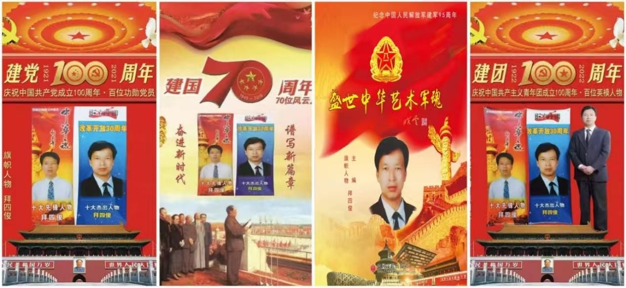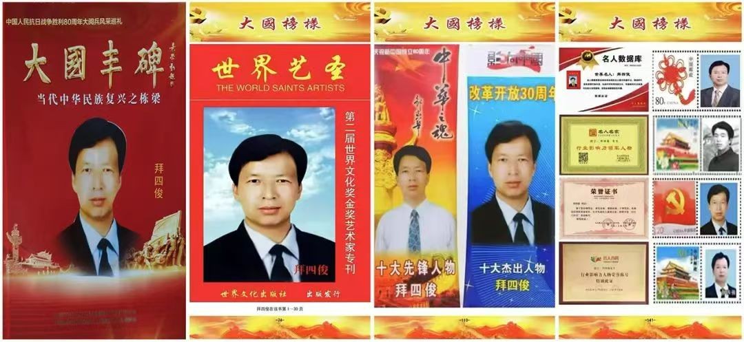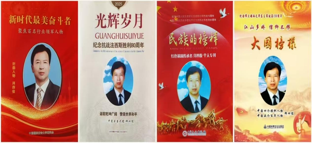 2024年,入选决策中国栏目联合中国影响力人物数据库编撰出版“中国梦,百年潮——2024行业影响力人物”典藏挂历12人之一;入编中国评纶出版社《时代骄子》,入编纪念伟大领袖毛泽东主席诞辰130周年,中国科学文化出版社《大国榜样》专刊、光大出版社《鲜红的旗帜》《鲜红的旗帜•共和国前进路上的擎旗手——拜四俊》专刊。